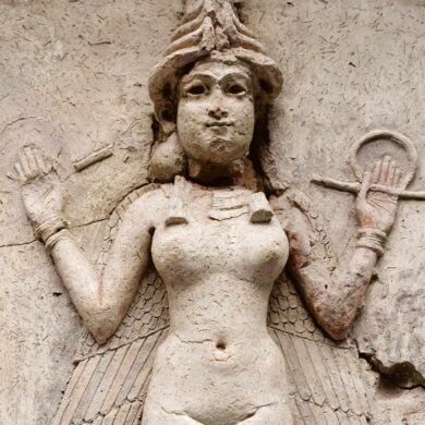 Burney-Relief, auch Königin-der-Nacht-Relief genannt. Mesopotamische Gottheit, vermutlich eine Ischtar-Darstellung. Terrakotta, Sumer, ca. 1950 v. Chr. British Museum, London. Foto: Gennadii Saus i Segura, CC BY-SA 4.0