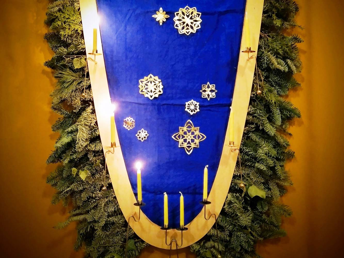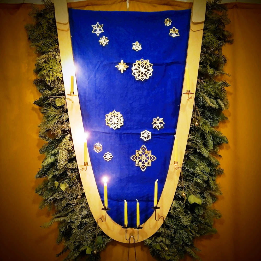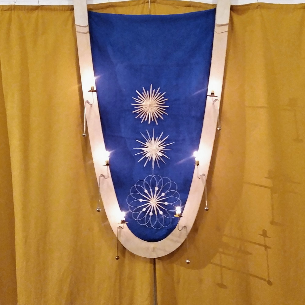 Wer aber eine Fläche füllt – zum Beispiel die abgebildete Parabel als Adventskalender mit Sternen – und dabei genau achtgibt, kann Folgendes bemerken: 1. Als Erstes fühlt man die Verhältnisse des Ortes – in welche Verhältnisse setzt man den neuen Stern, durch Winkel und Abstände. (Der erste Stern setzt Verhältnisse zum gesamten Platz und zum Zeitpunkt: markiert er mit dem 1. Dezember zugleich den 1. Advent, macht das einen ‹Hauptort› in der verfügbaren Fläche wahrscheinlicher, sonst wird wohl eher ‹nebensächlich› begonnen.) Das ist das Wesen des Messens: sich ins Verhältnis setzen, Beziehung eingehen. Ein Ding ist so hoch wie oder größer als – dass wir heute gewöhnlich ins Verhältnis zum universalen Meter setzen, dient sachlicher Verständigung sehr, verschleiert aber das eigentliche Tun. In der Negation wird es deutlich: ‹maßlos› heißt immer ‹unverhältnismäßig›. 2. Als Zweites erst erwacht die Frage nach der Eigenqualität des Sterns – welche individuelle Gestalt hat er, welche Farbe, wie viele Strahlen? Das ist die Frage nach der Zahl: Was hast du selbst zu erzählen? Was warst du schon vorher, bist du Kraft eigenen Wesens, unabhängig von aktuellen Verhältnissen? Primzahl, ‹befreundete Zahl›, Quersumme von. (Man studiere Zahlentheorie, z. B. ‹Null, unendlich und die wilde 13: Die wichtigsten Zahlen und ihre Geschichten› von Albrecht Beutelspacher. Oder man vergegenwärtige sich die kabbalistische Weltauffassung.) 3. Zuletzt entsteht die Wichtung – was bewirkt und bedeutet dein Sein an dieser Stelle zum jetzigen Zeitpunkt, für die anderen Sterne drum herum? Es entstehen Gruppierungen, bilden sich Gestalten, Sternbilder leuchten.