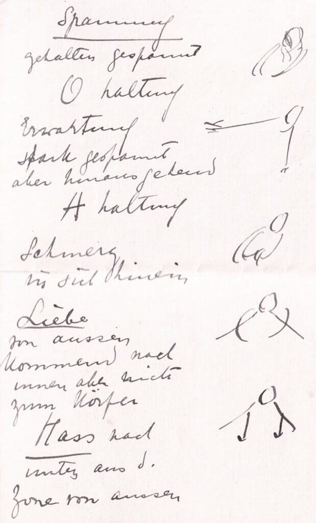 Hasler Es ist interessant, dass 1916 bis 1918 eine Gruppierung in Berlin und eine Gruppierung in Dornach parallel arbeiteten. Sie haben mit den Elementen der Kurse geübt, sie haben probiert, sie haben das kombiniert. Für die ‹Urtriebe› von Fercher von Steinwand sehen wir, dass sie alles Mögliche dieser Stunden aus dem Apollinischen Kurs miteinander kombiniert haben. Also, vier Zeilen des Textes mit allen möglichen Gesetzmäßigkeiten, dann die nächsten vier Zeilen mit weiteren Gesetzmäßigkeiten usw. Wir können sehen, wie sie ‹verdauen›. Annemarie Dubach hat die Grundelemente 1927 auf Bitten Marie Steiners aufgeschrieben, und die nächste Publikation war erst 1965 der Querband, in dem alle Sachen wirklich enthalten sind – auch der Dionysische Kurs, den Lory Smits erst als alte Frau dokumentiert hat. Erst ab den 1960er-Jahren waren also die frühen Kurse dokumentiert.