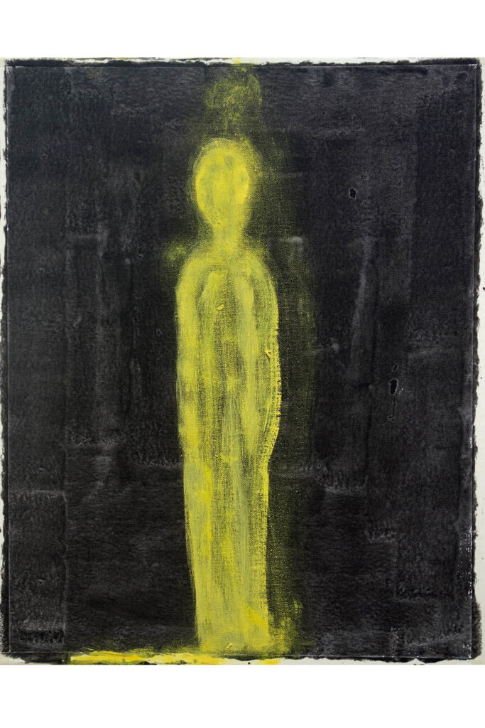 HW Das Gelb tritt vor das Schwarz. Aber meine Empfindung dabei ist: Ich trete hinein. Doch ich halte im Bewusstsein, dass ich davor bin. Ich schaue an, wie ich da drin bin. Manchmal erscheint mir die Gestalt aber auch so, wie wenn sie in den Bildraum hinein gewendet wäre. Dann ist es so, wie wenn ich mich von hinten anschauen würde.