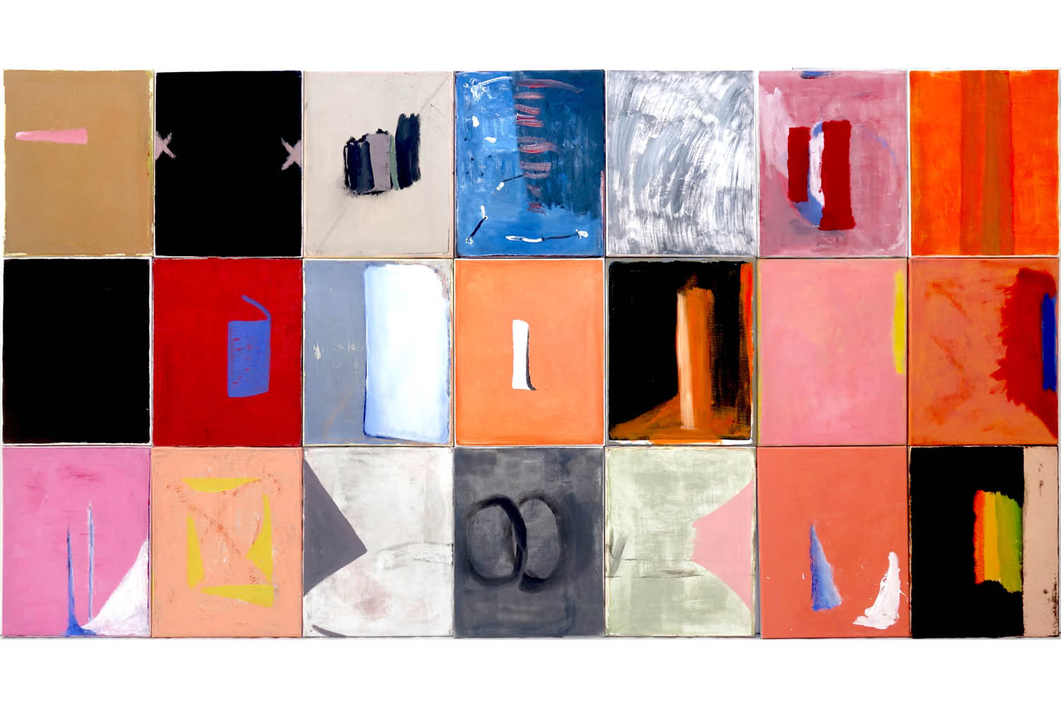 HW Hier habe ich etwas gemalt – und dann wieder übermalt. (2) Das ist wie ein Auslöschen. Aber man sieht hier noch etwas von dem, was vorher da war. Ich wollte keine Bilder malen, sondern auslöschen, was schon da war, oder einfach einen Hintergrund für ein erst noch zu schaffendes Bild machen. In beiden Fällen hat sich bei mir aber unerwartet eine Befriedigung darüber eingestellt, etwas anschauen zu können, was nach meinem eigenen Verständnis kein Bild ist. Das Zerstören, Übermalen und Herunterwaschen des Gemalten beschäftigt mich ebenso wie das Grundieren, Färben und Tönen schon seit vielen Jahren. Es ist eine sehr angenehme Empfindung, ganz absichtslos, ohne die Absicht, ein Bild zu malen, Farbe auf die Fläche aufzutragen. Doch meistens fehlt mir dabei etwas. Ich bin gespannt, wie es mir mit den grauen gehen wird – ob ich sie so lassen kann.