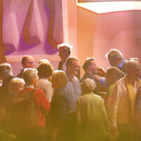 HW Das Rot wird an dieser Stelle – in der Mitte – wie ausgelöscht. Da kommt das Hellrote von vorn ganz nah an das Rot heran. Es löscht das Rote aus. Das Auslöschen selbst wird sichtbar. Es löscht sich das Sichtbare selbst aus, es verdunstet, zerrinnt vor meinen Augen. Du hast vorhin mit deinen Händen eine Doppelbewegung angedeutet: Etwas geht von dir aus, zu dem Rot hin, und etwas kommt dir von dort entgegen, kommt an dich heran und umfasst dich, und du versuchst es aufzufangen mit deinem Blick, aber es entzieht sich. Du siehst oder fühlst nur das Zerrinnen.