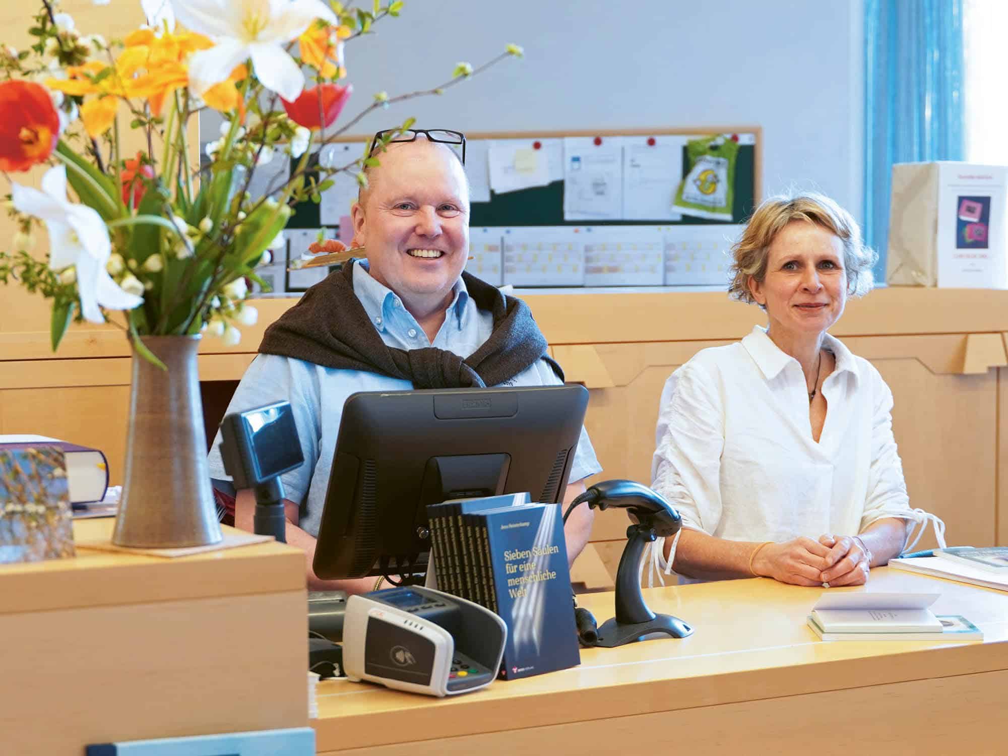 Stefan Haussmann und seinem Team gelingt das kaum Mögliche: die Buchhandlung am Goetheanum ohne Verlust zu führen. Das ist angesichts der wechselnden Besucherströme und der hohen Buchpreise nicht einfach. Dass es gelingt, liegt an dem ausgesuchten Sortiment, eng abgestimmt auf die Tagungen im Goetheanum. Was der Buchhandlung dabei das Leben schwer macht, sind die Altlasten aus der Corona-Zeit. Damals bekamen die Verantwortlichen einen Kredit über CHF 100 000, um die Ausfälle überbrücken zu können. Doch jetzt müssen sie die Summe zurückbezahlen. Zur Hälfte, so Haussmann, sei das schon geschehen. Die verbleibenden CHF 50 000 nehmen nun dem gern besuchten Buchgeschäft die Luft zum Atmen. Deshalb wendet sich Haussmann jetzt an seine Kundinnen und Kunden mit der Bitte, der Buchhandlung hier zu helfen, als würde man ideell ein oder mehrere Bücher rückwirkend aus der Corona-Zeit erwerben. Gerne würden Haussmann und sein Team von gesuchten Titeln mehrere Exemplare vorrätig halten, aber hier sind ihnen wegen des Kredits und der damit reduzierten Liquidität enge Grenzen gesetzt. Mit den Spenden hoffen sie, sich dann ohne diese Altlast ganz auf die Wünsche ihrer Kunden und Kundinnen konzentrieren zu können.