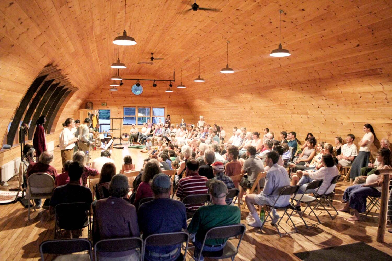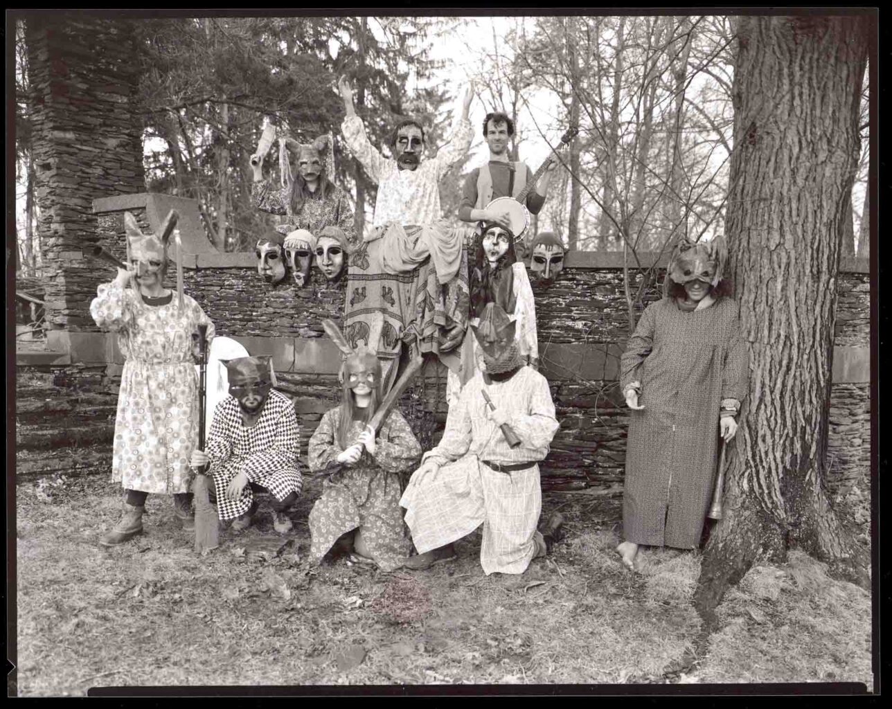 Links: Das Stück ‹Claverack Calico› mit Teilnehmenden des M. C.-Richards-Programm über den Anti-Rent-Krieg (1839–1845) in New York, Februar 2022. Nathaniel Williams mit Banjo in der hinteren Reihe rechts.