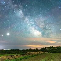 Wenn ich jetzt in den Nachthimmel schaue, kann ich hier auf zehn Grad Nord kurz nach Sonnenuntergang Merkur im Westen, dann Saturn, Jupiter und schließlich Mars im Osten sehen.