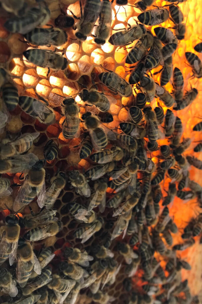 Wenn wir begreifen, was die Bienen tun, steigert das ihre Wirksamkeit? Beziehungsweise steigert sich durch unser Verstehen der Bienen unsere eigene menschliche Wirksamkeit? Was begreife ich über mein eigenes Wesen in der Welt durch die Bienen? Der Wille zur Liebe ist immer sanft. Das Sein der Natur ist so unendlich bedingungslos. Als hätten Bäume je Misstrauen gegen den Menschen gehegt. Ich möchte in Freundschaft mit der Welt leben und um das Werken der Bienen wissen. Das bleibt, als ich nach drei Wochen das ‹Bienenhaus› verlasse. ‹In der Liebe sein› wirkt. Denn Liebe ist niemals abstrakt. Sie hat einen Duft.