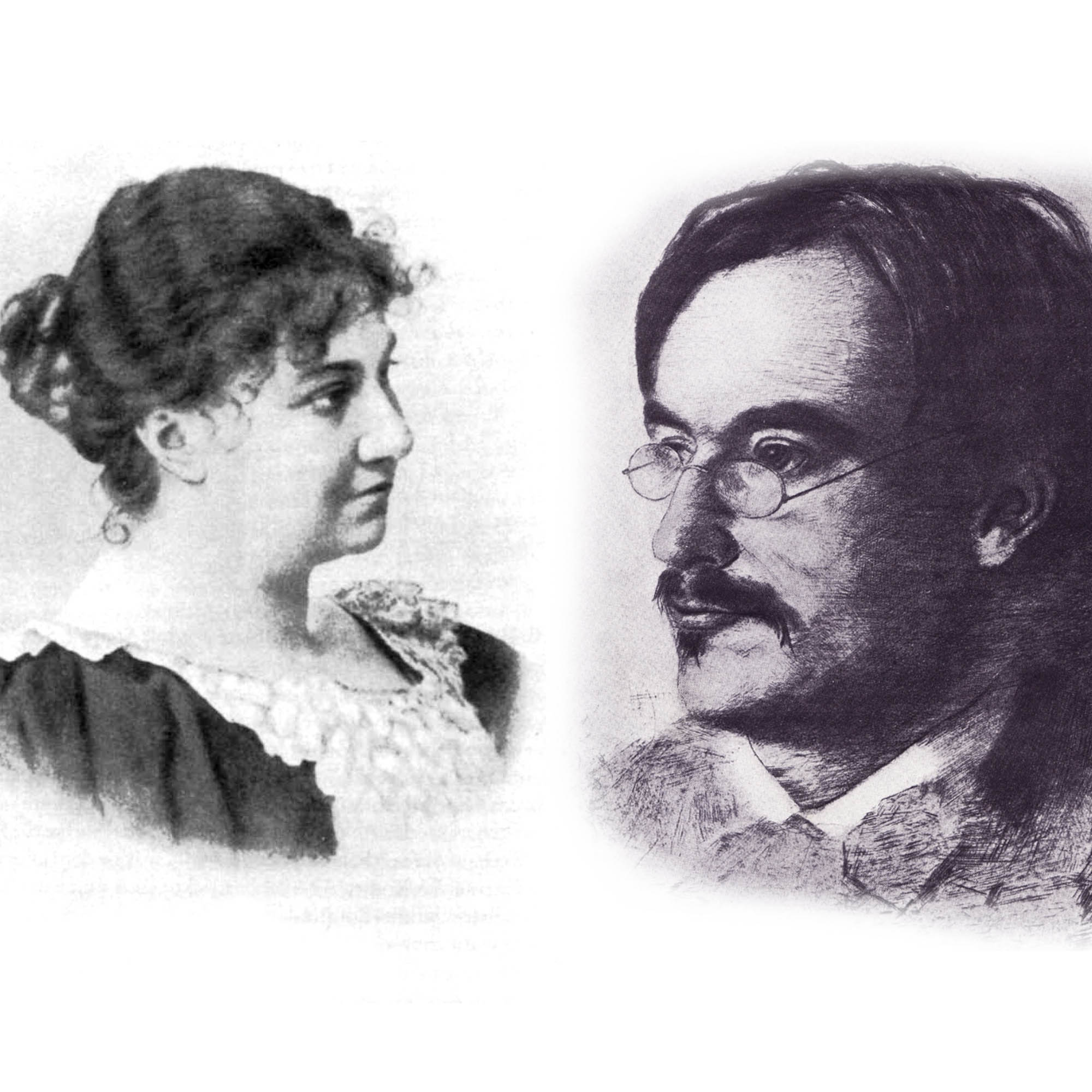 Bilder Rosa Mayreder um 1895. Rudolf Steiner um 1891/92, Radierung Otto Fröhlich.