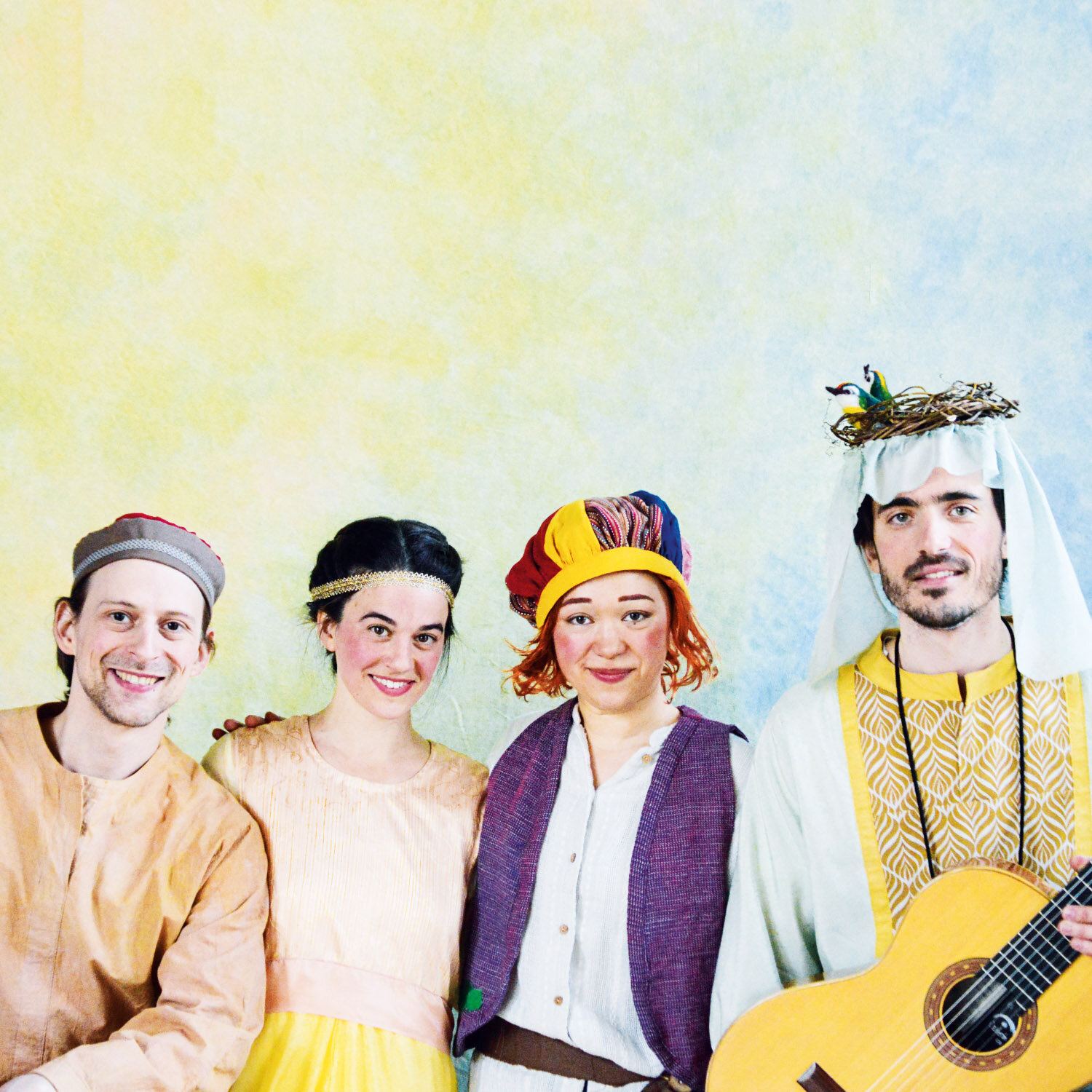 Titelbild: Ensemble mit Sprecher Philipp-Manuel Bodner, Eurythmistinnen Pia Secondo und Katharina Okamura sowie Gitarrist Agustin Belbussi