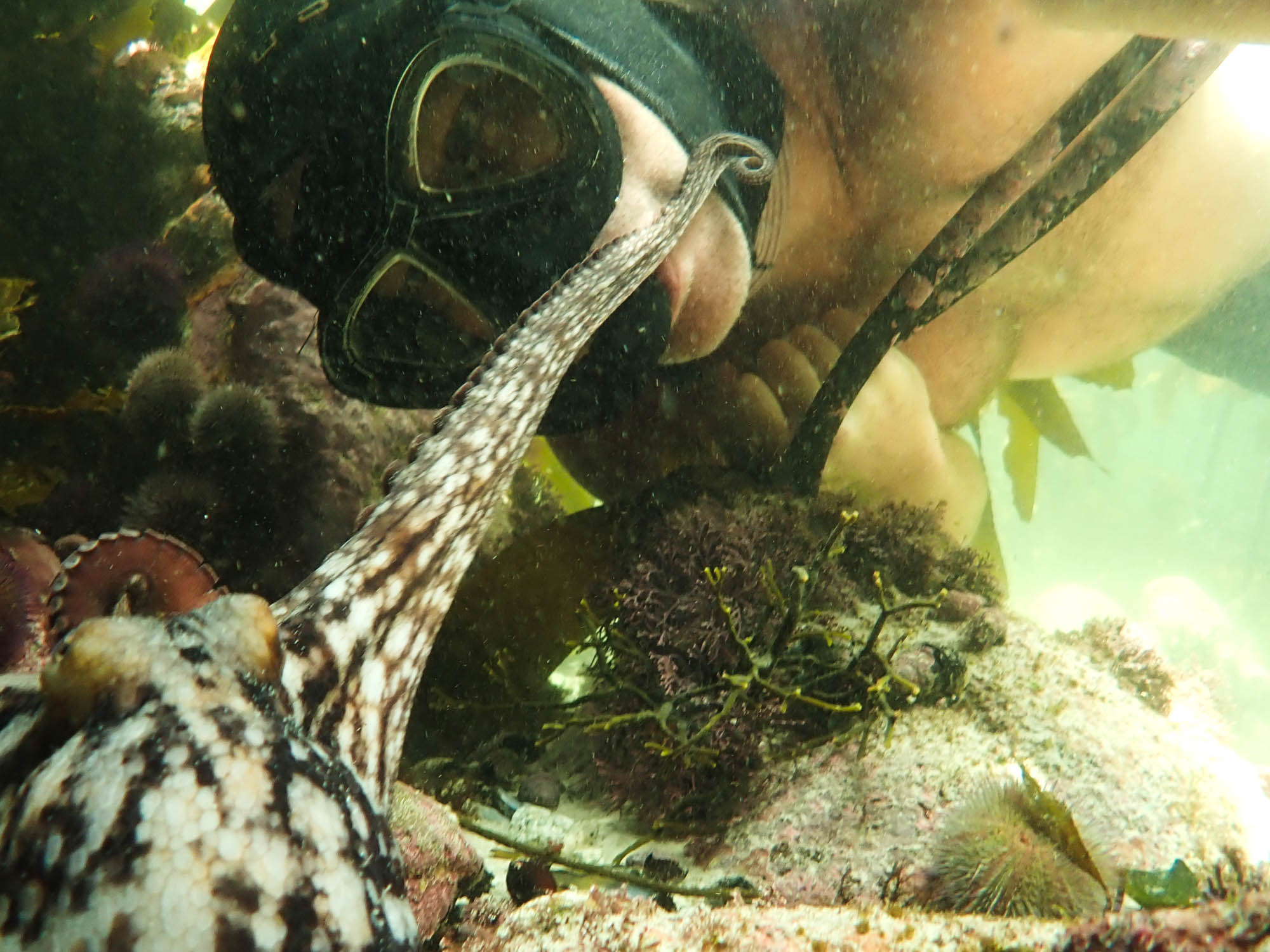 Fast ein ganzes Jahr, was der Lebensspanne eines Kraken entspricht, schnorchelte er täglich im Dickicht eines Tangwaldes am Kap der Guten Hoffnung. Der Netflix-Dokumentation hat er den Titel ‹My Octopus Teacher› (Mein Lehrer, der Krake) gegeben, weil dieses scheinbar so niedere Tier ihm Würde und Menschlichkeit vermittelt habe. Pippa Ehrlich und James Reed zeigen, wie der Taucher nach und nach das Vertrauen des wild lebenden Tiers gewinnt. Tag für Tag wartet der Taucher für die wenigen Minuten, die ihm ohne Luft bleiben, am Eingang dessen Höhle. Schließlich kommt das scheue Tier hervor und später fährt es mit seinen Tentakeln über seine Hand und schmiegt sich an seinen Brustkorb. Der Film führt in einzigartiger Nähe zur Intelligenz dieses Tieres, das sich mal seinen ganzen Körper mit Muscheln bedeckt, um sich zu tarnen, dann im Kampf mit einem Hai auf die einzig sichere Stelle springt, auf den Kopf des Hais, um bei dem Ritt im Kelpwald sich dann unerkannt abzustoßen.