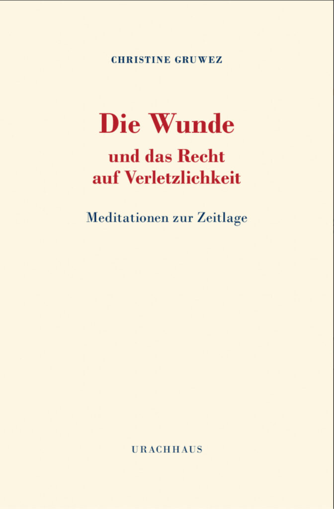 Buch Christine Gruwez, Die Wunde und das Recht auf Verletzlichkeit, Meditationen zur Zeitlage. Urachhaus, Stuttgart 2023.