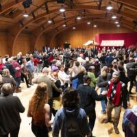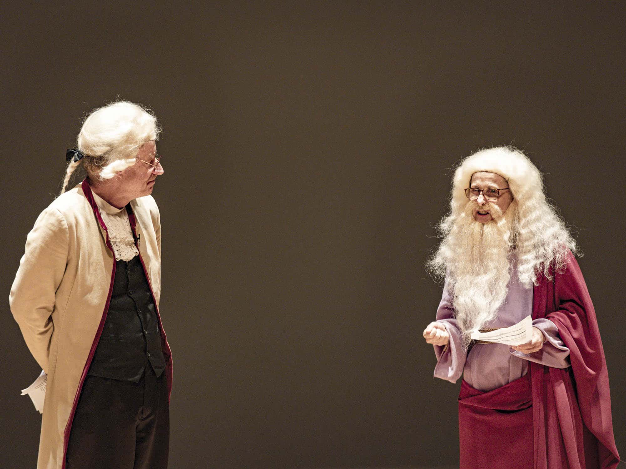 «Es hat fürstlich begonnen», kommentiert Stefan Hasler (Sektion für Redende und Musizierende Künste) die Bilder des Schlosses aus dem Fotoalbum zur Reise Rudolf Steiners nach Koberwitz am 7. Juni 1924. Mit dem Ausspruch ‹Am Anfang war das Wort› erläuterte Matthias Rang (Naturwissenschaftliche Sektion), dass es in Koberwitz, wie allgemein bei anthroposophischen Initiativen, zuest mit einem Vortrag begann (Bild 1). Vesna Forštnerič Lesjak, Kollegin von Matthias Rang, zeigte an dem Buch von Jan-Albert Rispens ‹Bäume verstehen lernen›, dass man aus einem Satz Rudolf Steiners («Bäume sind aufgestülpte Erde») ein ganzes Buch machen könne. Karin Michael und Marion Debus (Medizinische Sektion) erinnerten daran, dass man im Operationssaal grün trage und dass Ita Wegman einen Bauernhof für die erste anthroposophische Klinik erworben hatte, damit die Patientinnen und Patienten frische Milch bekämen. Dann übernahm Oliver Conradt (Mathematisch-Astronomische Sektion) das Wort und sprach über die Erde, in der sich die Sternenwelt manifestiere. Stefan Hasler ließ Sylphen, Gnome und Zwerge eurythmisch auftreten (Bild 2). Während in der Landwirtschaft die Begegnung mit diesen Wesen tägliche Erfahrung sei, müsse man sich in der Kunst ziemlich strecken, um sie zu erfahren. Dorothee Prange (Pädagogische Sektion) erklärte mit Augenzwinkern, dass man Kinder als Salat und Jugendliche als Spätburgunder verstehen müsse, dann könne man sie am besten unterrichten. Grundlage war ein Text Philipp Reubkes (Pädagogische Sektion). Nathaniel Williams, Verantwortlicher der Jugendsektion, verglich daraufhin Denken und Düngen und sang mit den Tausend im Saal von Joan Baez den Refrain «how the winds are laughing». Einen Hymnus an die Göttin Natura, «du, der der Himmel geneigt ist», las Christiane Haid vor. Er inspiriere, um sich an die Zukunft zu erinnern. Dann trat Gerald Häfner (Sektion für Sozialwissenschaften) mit Gitarre im Arm auf. Soziales und Landwirtschaft seien geschwisterliche Gebiete, betonte er und stimmte das Lied ‹Merseburger Zaubersprüche› aus dem althochdeutschen (10. Jh.) an (Bild 3). Den letzten Gruß boten Constanza Kaliks und Peter Selg von der Allgemeinen Anthroposophischen Sektion. Mit Perücke und Rock spielten sie einen Dialog von Hölderlin und Plato (Titelbild). «Dr Geischt isch nundergkome», erklärte Peter Selg alias Hölderlin und fasste so die Gründung der biologisch-dynamischen Landwirtschaft schwäbisch zusammen.