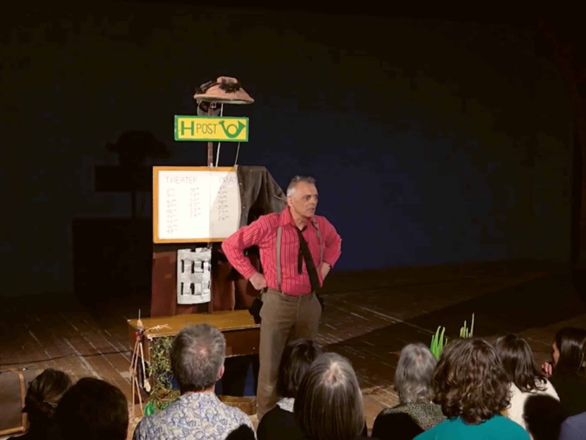 In seiner Bühnenaufführung ‹DreiMalGrimm› inszeniert Stefan Libardi vom Wiener ‹Theater im Ohrensessel› die grimmschen Märchen als Figurenspiel. Dabei spielt der volle Einsatz seines eigenen Körpers eine wichtige Rolle. Die märchenhaften Erzählungen rahmt Libardi ein mit Zwischenbemerkungen zu Bewegungsimpulsen im Figurenspiel. Die Zuschauenden werden dazu angeregt, gedanklich an dem Prozess vom Erzähltext zum Theaterstück teilzunehmen. Er stellt die Fragen in den Raum: Wollen wir eine epische oder dramatische Inszenierung? Nehmen wir Zentrum und Umkreis als Gestaltungskräfte, um den jeweiligen Bewegungsansatz zu finden? Versuchen wir das Spiel mit der Gegenwärtigkeit der Geschichte, dem Rhythmus, der Figur, dem Atem der Zuschauer, um zu einer musikalischen, poetischen, fantasievollen, voller Spielfreude getragenen Darstellung zu gelangen? Das Ziel ist schließlich immer, Farbe, Wort und Klang zusammen schwingen und tanzen zu lassen.