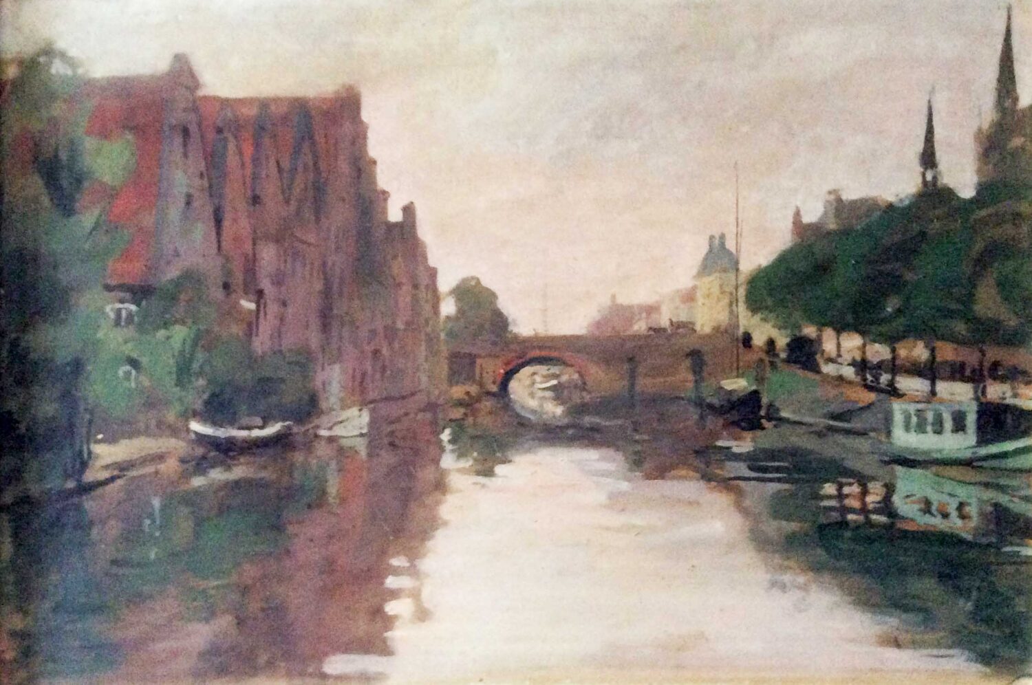 Von links: Hermann Linde: Erstes Goetheanum mit Heizhaus; Hermann Linde: Flickschuster in Kairo, 1891 (oben); Hermann Linde: Salzspeicher mit Holstentorbrücke in Lübeck