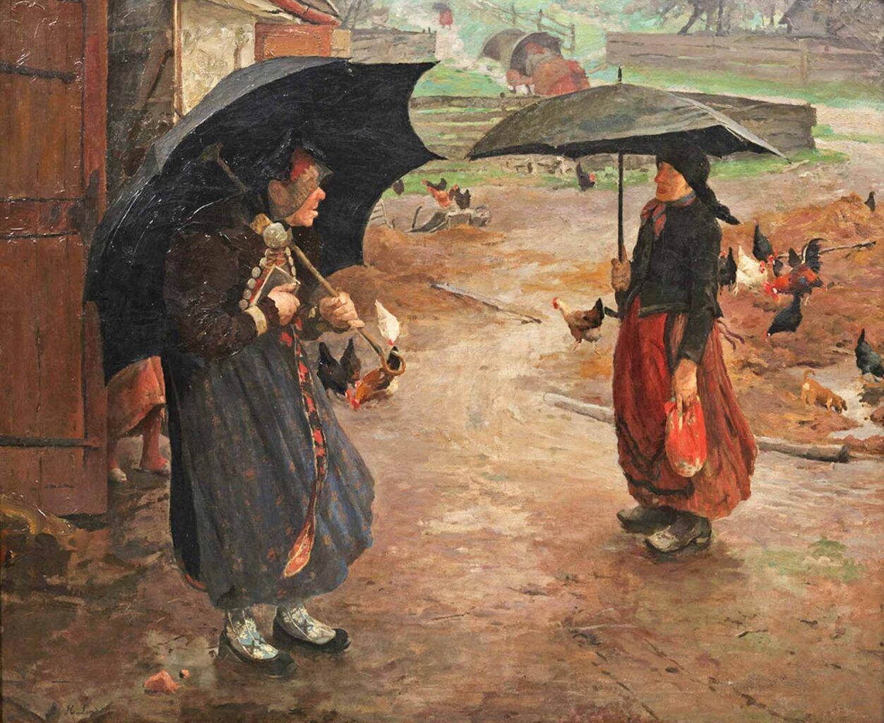 Mit ganz ähnlichen Fragestellungen hat sich auch Linde auseinandergesetzt, blieb aber zunächst dem Gegenständlichen treu. Das sollte sich aber bald ändern. Seine Bilder, die in Dachau und Umgebung entstanden sind, ‹lesen› sich wie eine Chronik des dortigen Alltagslebens: Bäuerinnen bei der Arbeit, Bäuerinnen beim Kirchgang, Szenen im Wirtshaus, Kühe auf der Weide, Frauen bei der Heuernte sowie Straßenansichten. Es ist der Blick, die Wahl des Standortes und die daraus resultierende Perspektive und es ist das malerische und zeichnerische Können, was Hermann Lindes Bilder ausmacht und die den Menschen, Tieren, Mauern und Pflanzen, Innen- und Außenräumen etwas wie Würde verleihen und sie zu vielsagend sprechenden Wesen werden lassen. Einer, der dies erlebt und erkannt hat, war Max Liebermann, einer der bedeutendsten Vertreter des deutschen Impressionismus. Liebermann war eng befreundet mit Hermann Lindes älterem Bruder Max, der in Lübeck als Augenarzt praktizierte und zugleich ein leidenschaftlicher Sammler zeitgenössischer Kunst war. In seinem Garten stand eine Skulptur von Rodin und an den Wänden hingen etliche Bilder von Edvard Munch, der mehrere Monate als Gast in seinem Haus verbrachte und dessen Förderer er viele Jahre hindurch war. Einmal, als Max Liebermann bei Max Linde, der übrigens lebensgroß von Lovis Corinth porträtiert wurde, zu Gast war, führte dieser ihn in das Haus der Eltern, in dem Liebermann erstmals Bilder von Hermann Linde sah und spontan ausrief: «Wenn ick det könnte!»7
