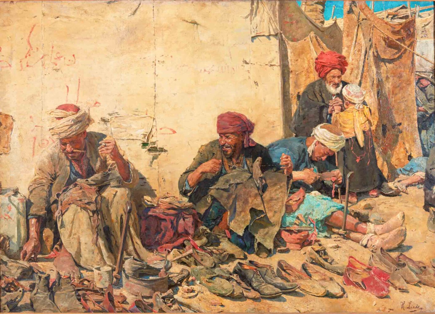 Ein anderes großformatiges Gemälde ‹Arabische Flickschuster›, das in einer Ausstellung in der Crystal Palace Picture Gallery in London im gleichen Jahr zu sehen war, wurde mit der Silbermedaille ausgezeichnet. Und nur ein Jahr später nahm Linde in Tunis an der jährlichen Gemäldeausstellung teil und erhielt für seine Werke den ersten Preis. Seine Eindrücke über die Flickschuster in Kairo hielt er auf mehreren Notizzetteln (Archiv am Goetheanum) so fest (Auszug):