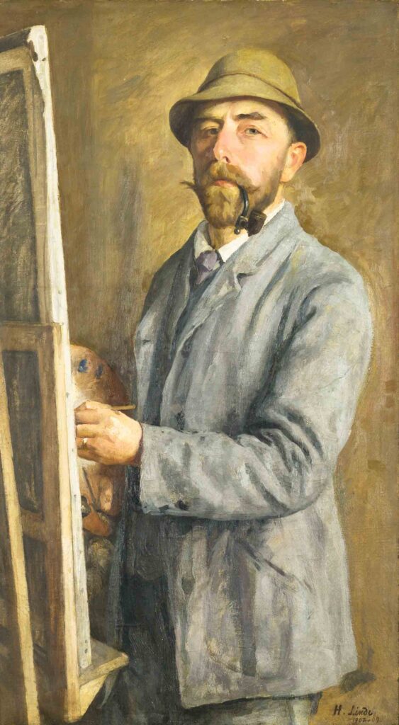 Es ist wohl zutreffend, wenn gesagt wird, dass sich das Leben Hermann Lindes (1863–1923) in zwei Welten abspielte. Da war seine Welt vor der Jahrhundertwende, angereichert durch Begegnungen mit zahlreichen Künstlerinnen und Künstlern, die, alle auf eine andere Weise, zu Wegbereitenden verschiedener Kunstrichtungen wurden. Es war auch die Welt, geprägt von naturalistischen und impressionistischen Einflüssen, die ihren Ausdruck fand in Lindes Landschaftsbildern und Städteansichten sowie in seinen Genrebildern und Porträts. Und dann war da die neue Welt, in die er durch die Begegnung mit Rudolf Steiner 1904 in München eintauchte. Prägend aber für sein künstlerisches Schaffen war zunächst seine Familie. Der Großvater mütterlicherseits, der Kunstmaler Christian Stolle, erteilte Hermann und seinen sechs Geschwistern ersten Mal- und Zeichenunterricht. Der Vater, eigentlich Apotheker, war ein leidenschaftlicher Fotograf und experimentierte mit neuen Linsensystemen mit dem Ziel, die Technik des Fotografierens zu verbessern. Obgleich er es gerne gesehen hätte, dass seine Söhne in seine Fußstapfen treten, hat er doch, ohne zu zögern, die künstlerischen Ambitionen der beiden Söhne Hermann und Walther (später Professor an der Kunstakademie Berlin) unterstützt. Auf seine Empfehlung hin studierte Hermann Malerei zunächst an der Kunstschule Dresden bei Leon Pohle und später in Weimar bei Max Thedy und Albert Heinrich Brendel. Während Thedy sich einen Namen machte durch seine Städteansichten und Landschaftsbilder, widmete sich Brendel der Tiermalerei. Diese Sujets finden sich später auch in Lindes Werken.