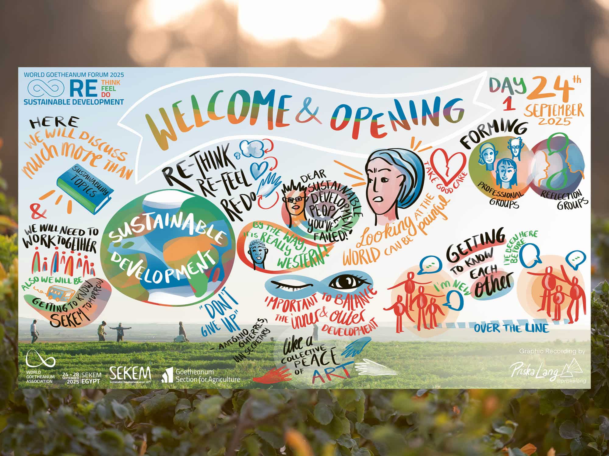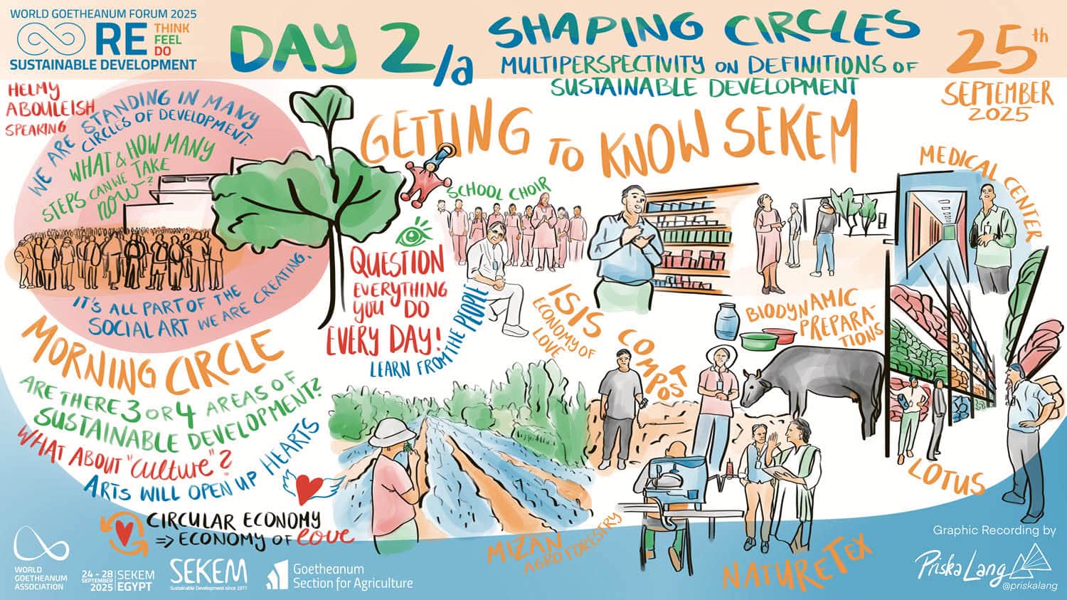 Der Begriff Nachhaltigkeit existiert schon seit einiger Zeit. Da sich die Welt verändert hat und weiterhin wird, sollte der Begriff ‹nachhaltige Entwicklung› möglicherweise aktualisiert werden. In Sekem (Ägypten) kamen über 150 Teilnehmer aus aller Welt zusammen, um sich mit der Frage ‹Wie können wir nachhaltige Entwicklung neu denken, neu fühlen und neu gestalten?› auseinanderzusetzen. In verschiedenen Workshops, Plenen, künstlerischen und musikalischen Erkundungen sowie Exkursionen vor Ort und praktischen Übungen wurde diese Frage behandelt. Das führte zu einem ersten Entwurf einer neuen Erzählung für nachhaltige Entwicklung.