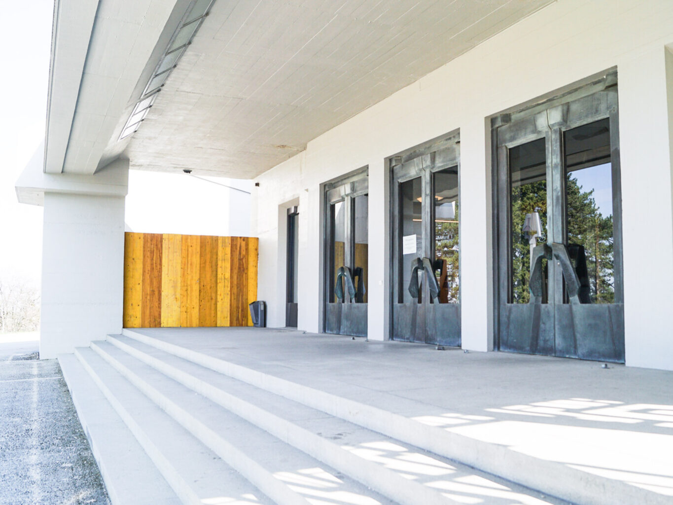 Die schwarzen markanten Eisentore zur Terrasse im ersten Stock hatte 1928 der in Moskau geborene Oswald Dubach entworfen. Er war für die Schnitzarbeiten des Ersten Goetheanum der wichtigste Künstler. Das Tor wird nun ausgebaut und für einige Zeit durch eine provisorische Bauwand ersetzt. Bisher konnte nur die Innentüre des Tores geöffnet werden, in Zukunft soll es sich vollständig öffnen lassen. Dazu muss ein Mülleimer weichen. Für die Koordination solcher kleiner Bauprojekte gibt es die Campus-Gruppe. Dieses zwölfköpfige Team mit Vertreterinnen und Vertretern aus den Abteilungen Empfang, Bauadministration, Goetheanum-Leitung, Führungen, Gärtnerei Campus und Sektion für Bildende Künste kommt regelmäßig zusammen, um die vielfältigen Gesichtspunkte der gärtnerischen und architektonischen Gestaltung um und am Goetheanum weiterzuentwickeln.