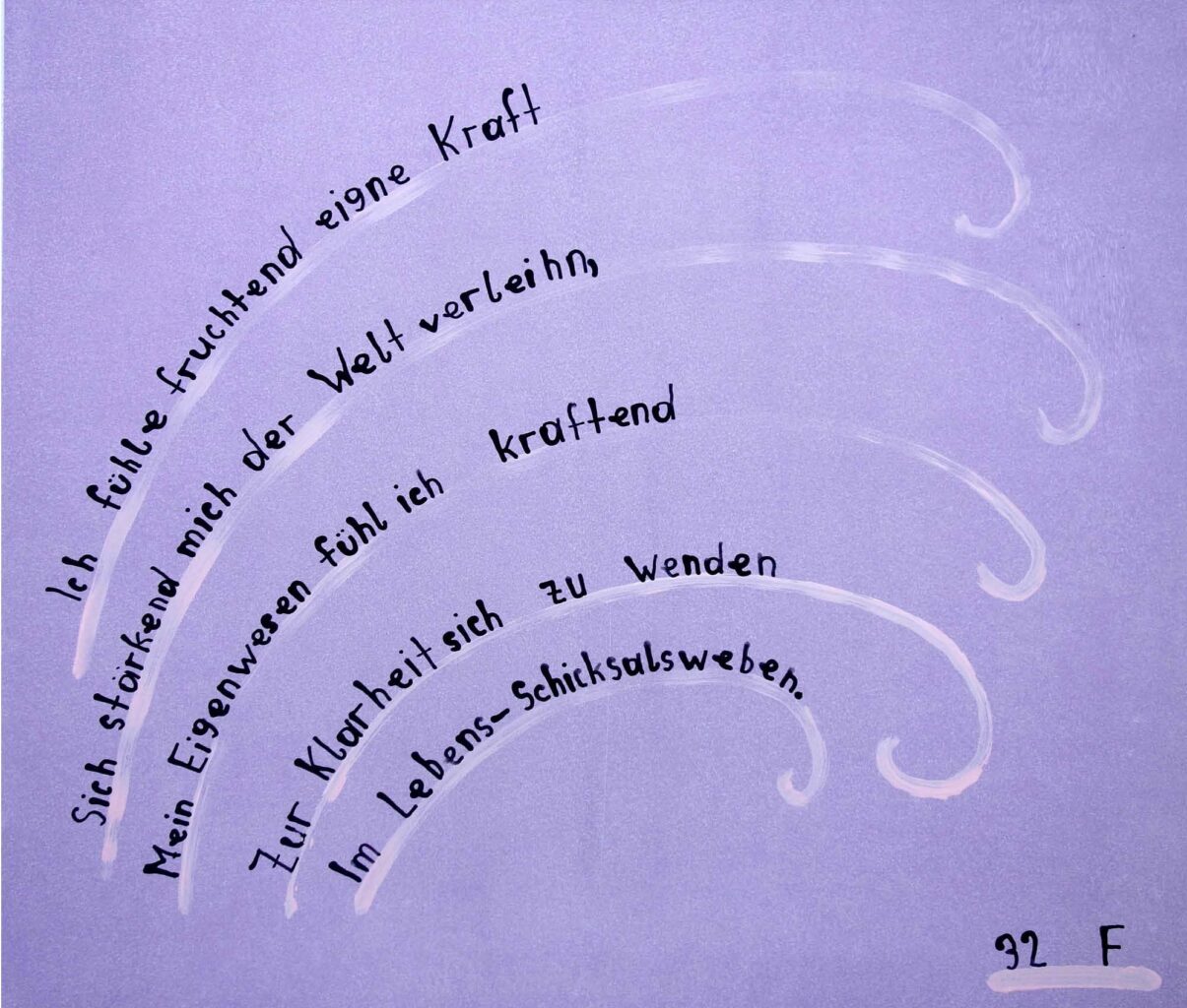 It started like this [according to Victoria]: “I wrote ‘Ronja the Robber’s Daughter’ on a piece of paper for my friend Vivian. He left it by the coffee machine. A short time later, the painting master, Hannes Weigert, found it. He thought, ‘Who wrote that?’ (Since I had written it so beautifully.) I went back and said, ‘It was me!’ We thought about what we could do with this writing, and that’s when we came to the decision to write out the Soul Calendar verses.”2