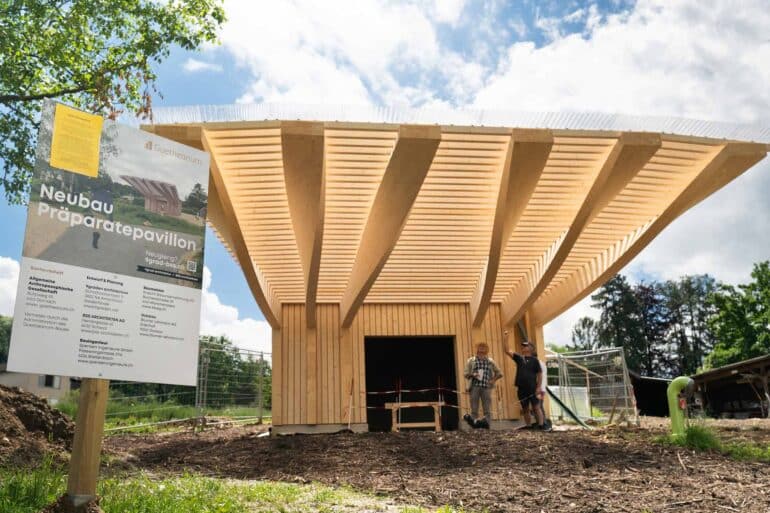 Construction in the Goetheanum garden park. Three buildings in the garden above the Goetheanum have been planned in order to...
