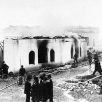 Janusz Korczak surrounded by children in the Różyczka, a branch of the Dom Sierot (orphanage) in Gocławek. 1925-26. © Muzeum Warszawy