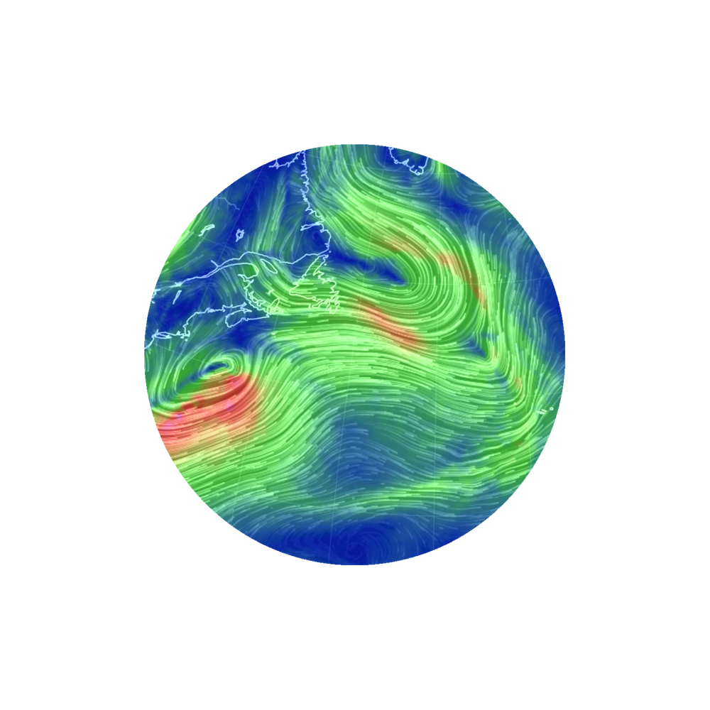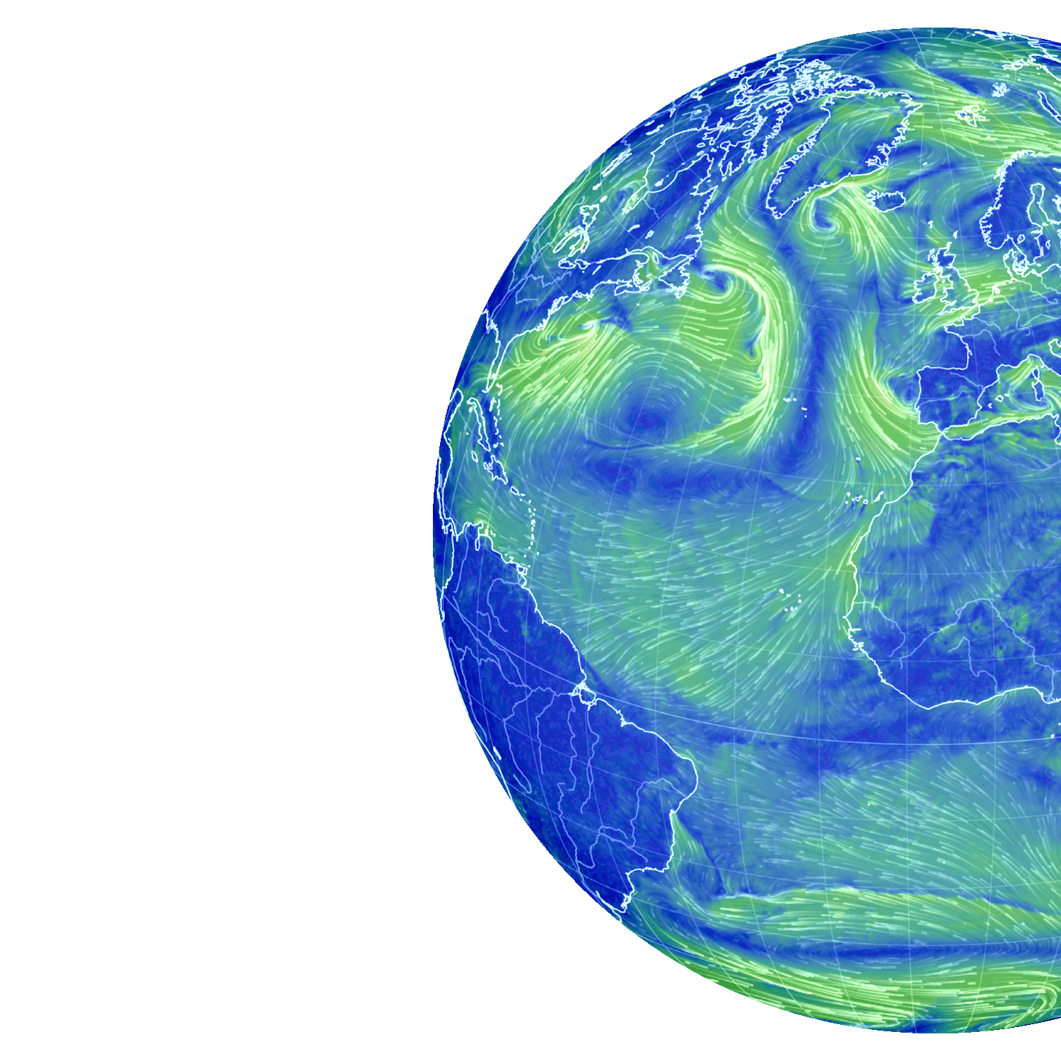 Title image Where there is water, air moves it; where there is land, water slows down. Solar heat is a play of the elements. Pictured here: air movements over the Atlantic Ocean on April 20, 2020 from an altitude of approx. 100 meters. Source: EarthWindMap