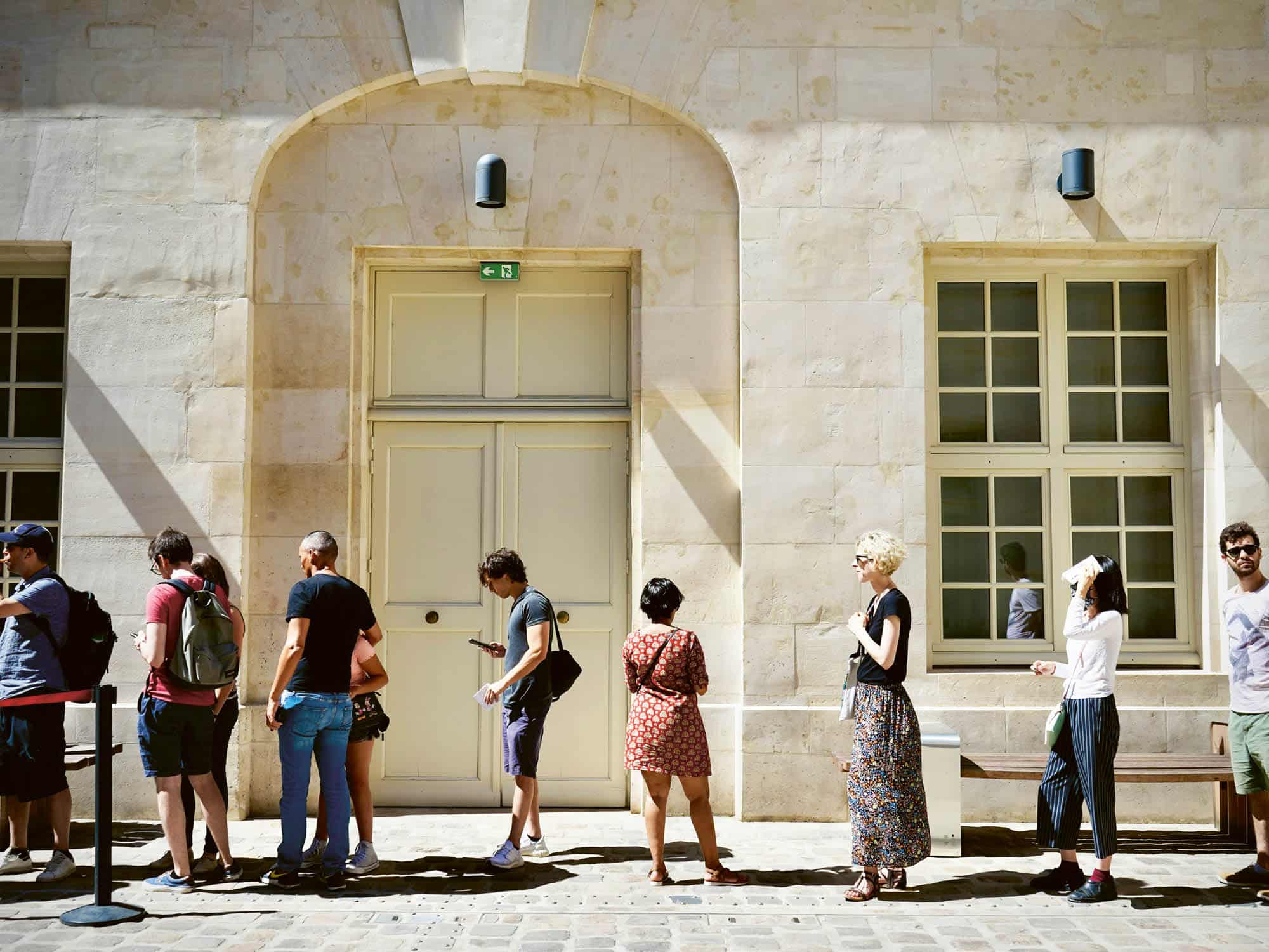 Another ten minutes and thirty people more, and the queue began to break up a little, as the increasing number of people waiting generated more anonymity. As we approached 7:45 am, a cross-section of German citizens had gathered: old, young, with children or clients, transgender, Barbie-style, reserved, speaking loudly, suits, sweatpants, tattered trousers and expensive lipstick, weary, facing each other, withdrawn, with headphones, wishing each other Gesundheit after sneezing. The faces of those entering now looked rather desperate when they saw the length of the queue. But someone explained that it would actually go quickly once they got a ticket number from the machine. Someone poured themselves a cup of tea and said they had given up the previous week. And the woman who had arrived first eventually stood by the ticket machine to make it clear to new arrivals with her physical presence that there was a queue. Her friend joked that she was the machine’s bodyguard. We laughed again. The dynamic had changed, but the mood was still good. In the end, there were about fifty people in the room. All equal before the law and in their various issues that needed to be resolved with the authorities.