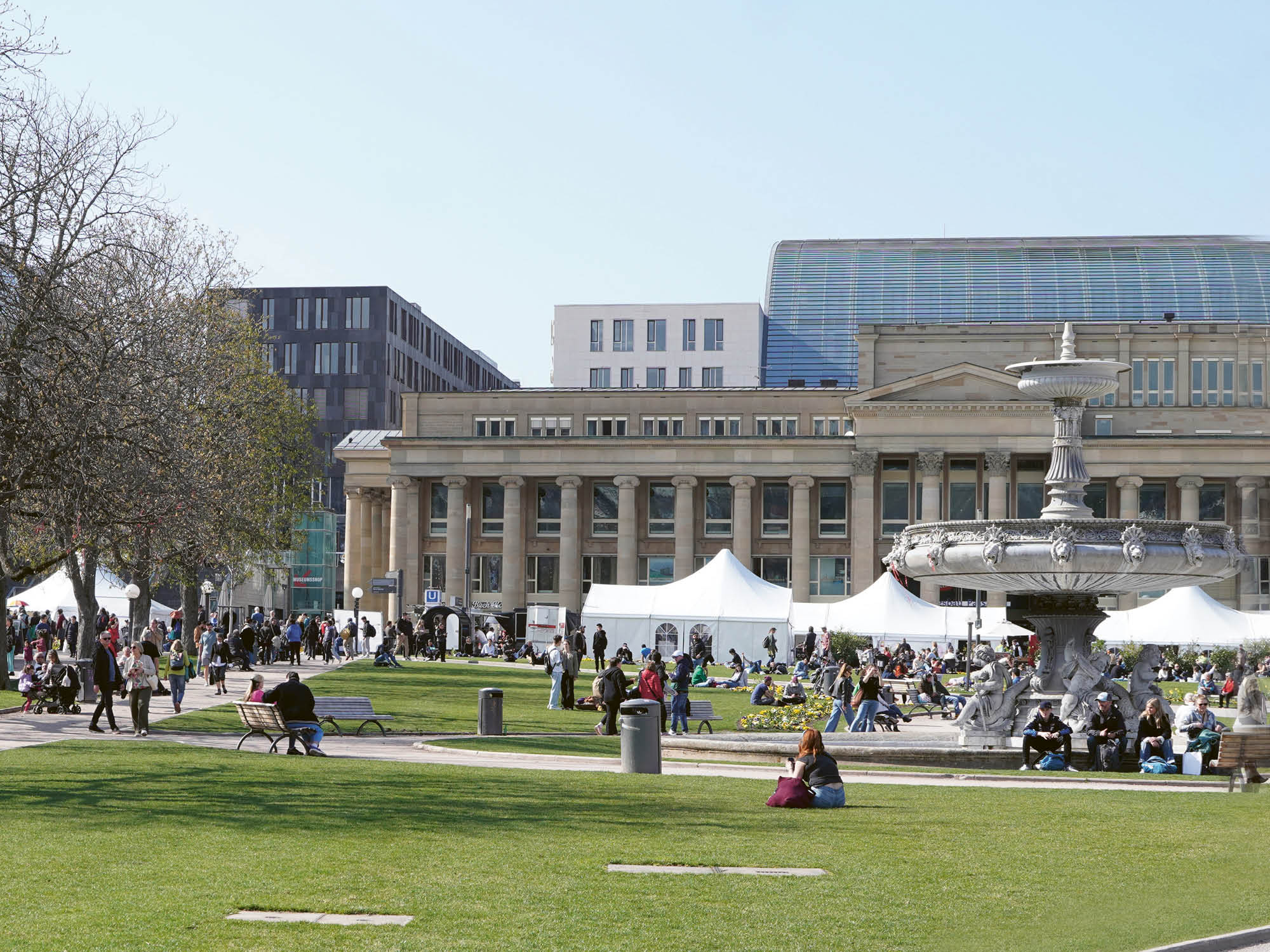 What a picture! In the sunny weather of the last weekend of March, in front of the long, thirty-four column façade of the neoclassical Königsbaus with the Neues Schloss Palace in the background on the far side of the square, a line of white tents stood along the Schlossplatz for the 2025 Steiner Year of Celebration [Festjahr]. Like a dozen little harbors, the tents stood in a row alongside the perpetual flow of people on Stuttgart’s main pedestrian artery. Upwards of 10,000 people walk and stroll along this avenue every hour, and—like every shopping boulevard—they’re looking out for inspiration, open to new things. But unlike the shopping temples trying to captivate the eye and seduce them from their path, the white festival tents marked themselves discreetly with simple banners and signs. They were unimposing from the outside, as if wanting to commune with the quiet part of the soul, where we don’t want to have, but just to be. They posted short, innocuous titles, for example: “Emergency Pedagogy,” “Water,” “Meditation.” Matthias Niedermann from the organization team of the Anthroposophical Society in Germany [Anthroposophischen Gesellschaft in Deutschland, AGiD] explained: “We wanted to weave together the anthroposophical credo: deep esotericism, broad openness. How else does one display spirituality outwardly than through modesty and quiet? It changes completely once you enter into a direct encounter with another human being.”