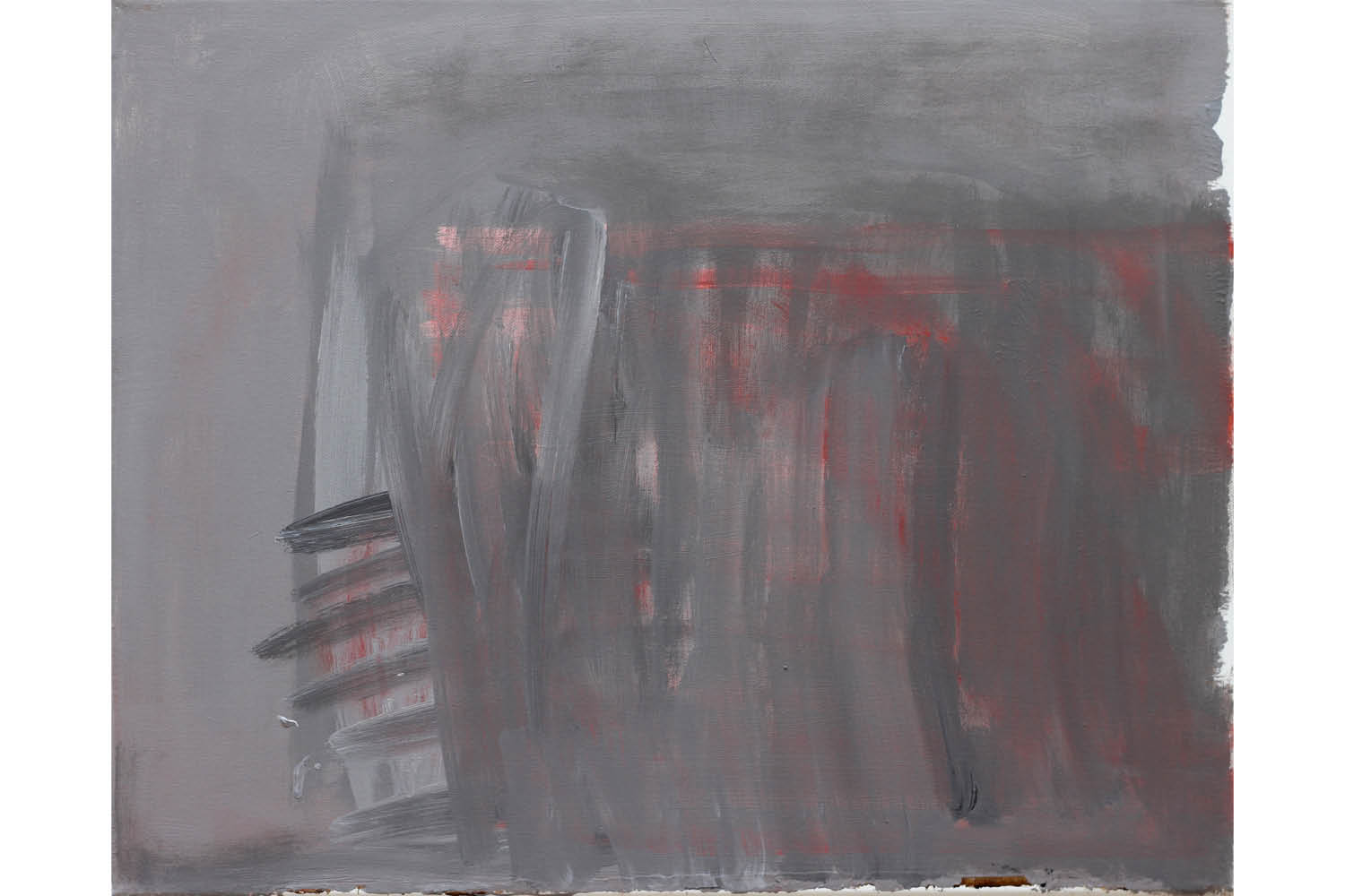 Hannes Weigert: . . . a gray image. (1) Actually, just primer. I like spending time there at the moment. I really like that I don’t feel the urge to paint anything on the gray background.