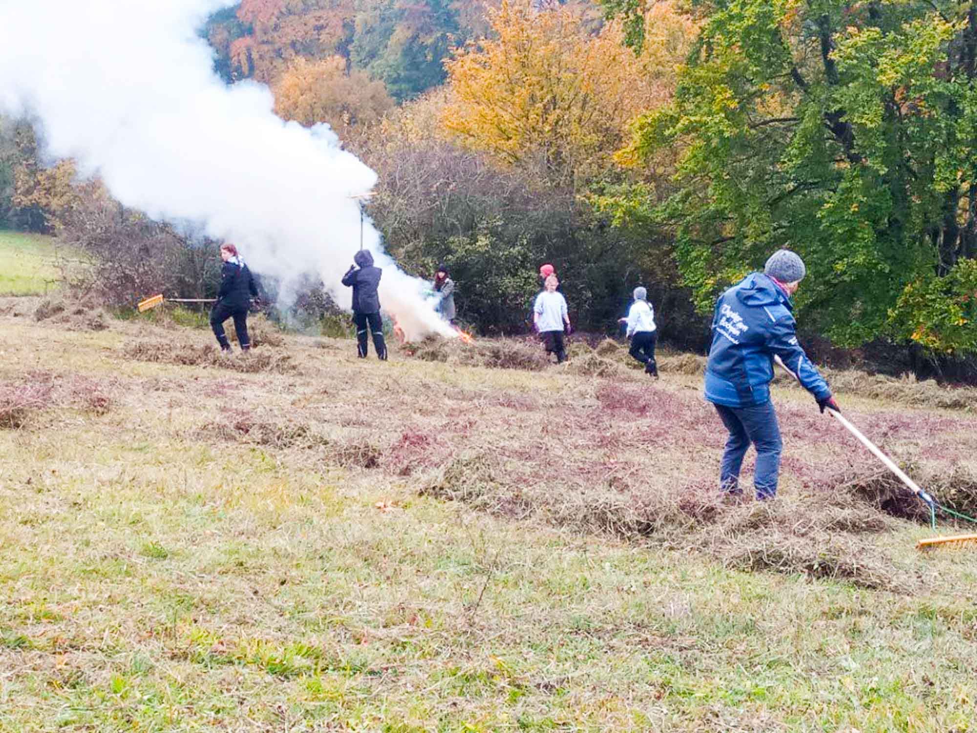 Machines are too brutal for the flora and fauna of the UNESCO Rhön Biosphere Reserve. Manual work is necessary and has to be done every year so that the protected areas do not become permanently overgrown. The Rudolf Steiner School Loheland has had a forestry internship as part of its curriculum and supported the rangers for years. This is how habitats are preserved. This autumn they removed cuttings, burned brushwood, and tended the Red Moor, whatever the weather. Around three hectares of land were plowed by the 9th-grade students in 14 days. «A great achievement», said the rangers, and they are grateful for the contribution. Species conservation would not be possible without cooperation from schools and volunteers. Support from Loheland has become a tradition.