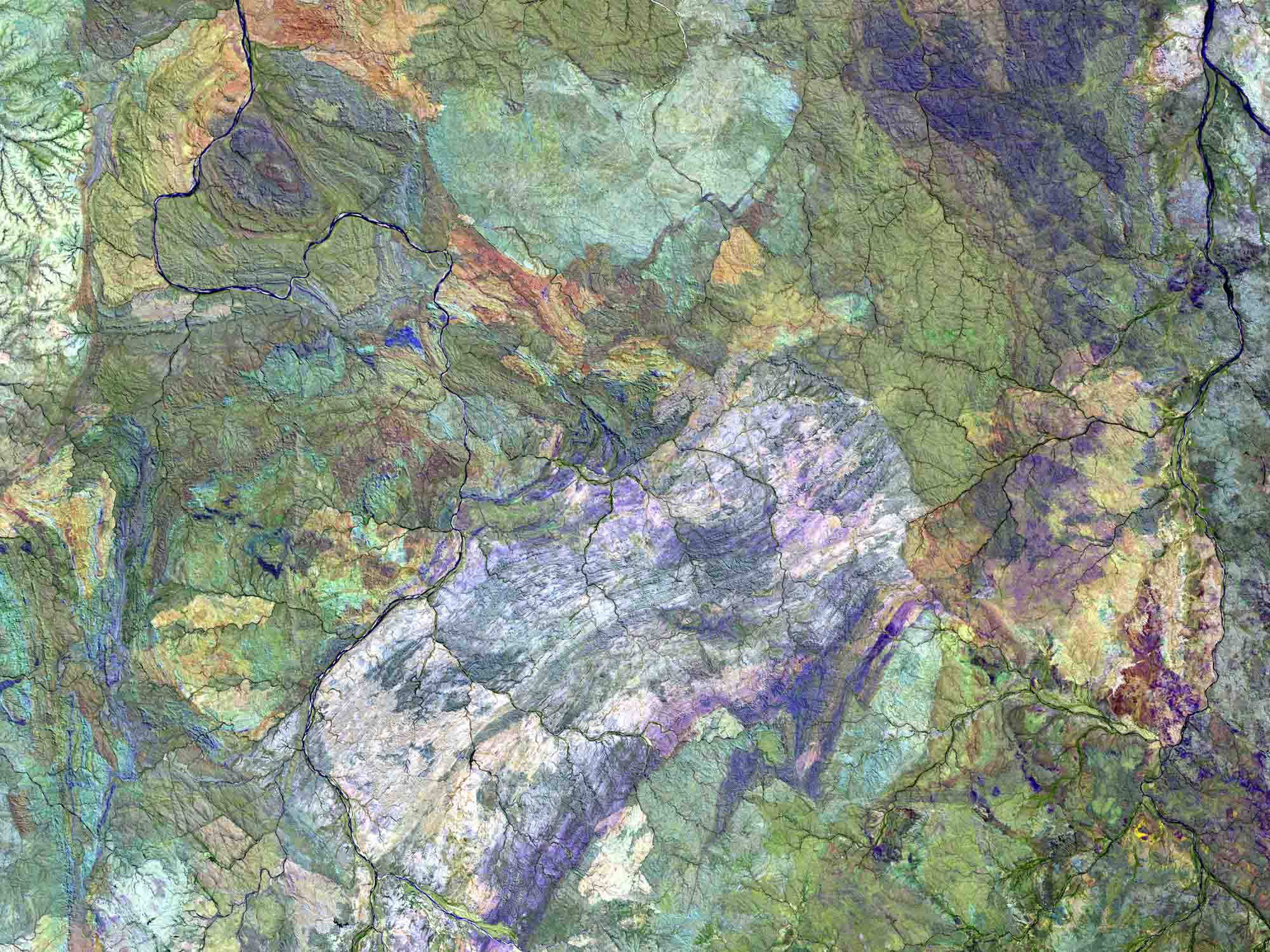 Cover Image The western region of Australia’s Great Sandy Desert is an area where there is almost no sand but is characterized by a complex geology. Photo: USGS (United States Geological Survey) satellite image. – Translation: Monika Werner