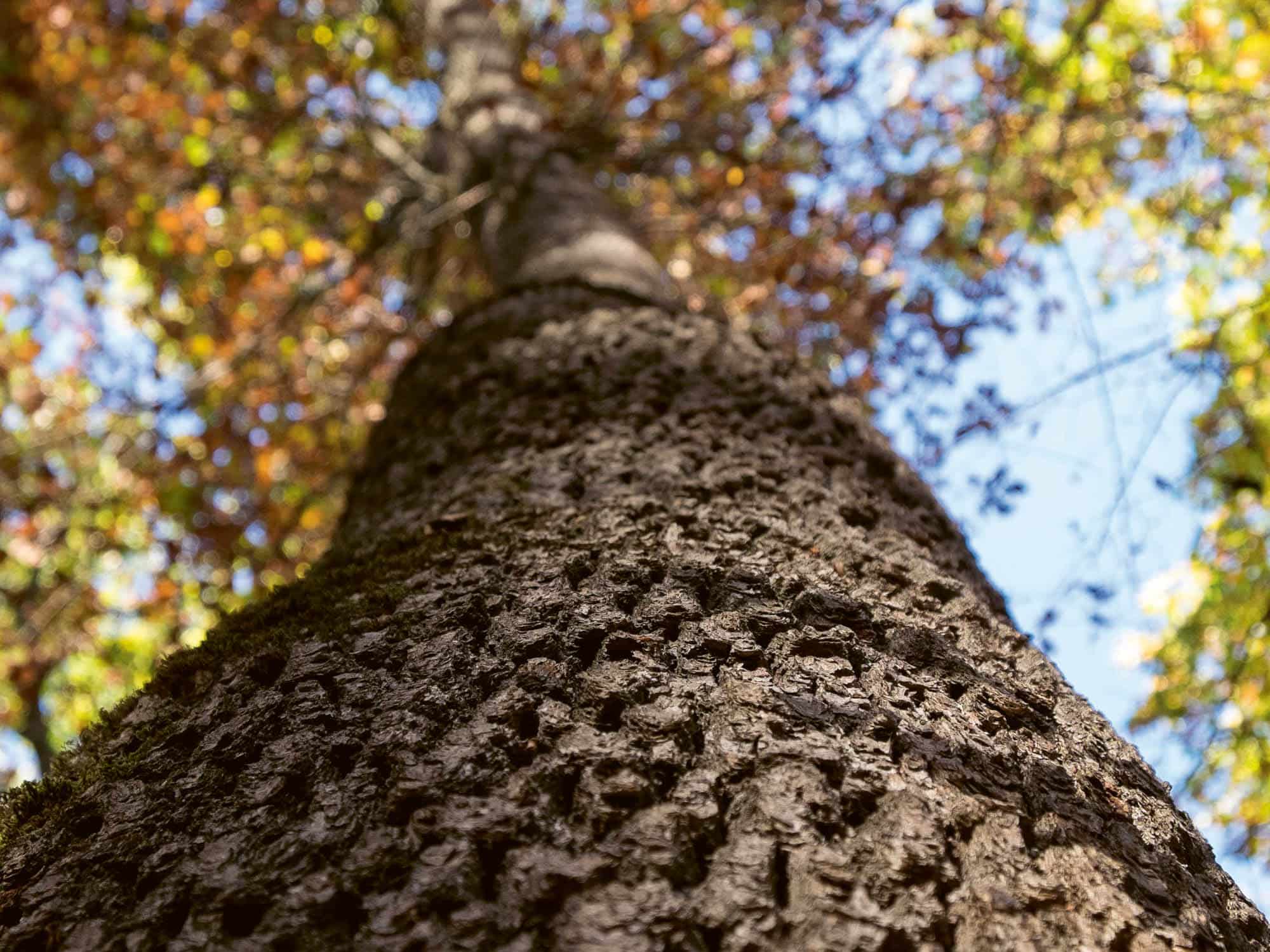 Sit on the ground and lean against the tree. Look up. Trace a branch from the trunk to the tip with your finger. Could you make that gesture with your arm? Close your eyes. Gently push your spine, vertebra by vertebra, against the trunk. Then, extend your legs on the ground beneath you. How does it feel to be held and supported? What might you feel like to the tree and the ground?