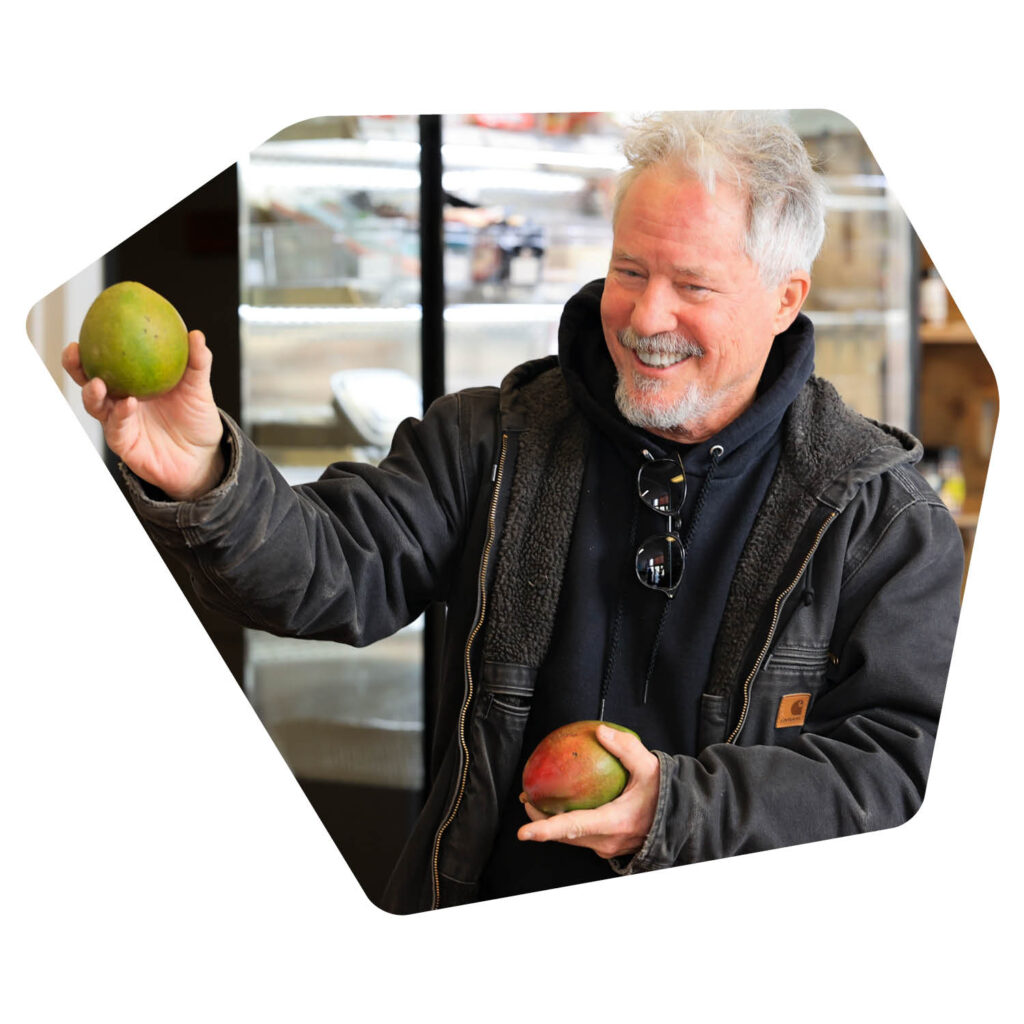 Then we opened Rolling Grocer in 2018. Before that, we had a truck that drove around, and people shopped from the truck. Hence the name. When it finally incarnated as a storefront, we had one year, then Corona hit. So we developed an online ordering system where people could pick up without going into the store. Since 2022, we’ve been a fully functioning store again. We also have a home delivery program for residents who are older or can’t get out. They order online or by phone, we fill and deliver their order, and we don’t charge for that. And we make it part of our mission to purchase and sell as much as we can from our local and regional farmers and food processors. We now have close to 50 different small producers and processors in this store.