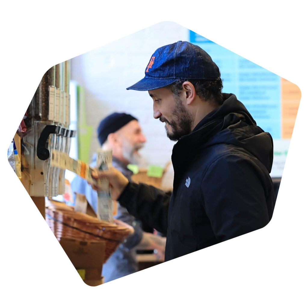 Our blue tier only has a 10% margin, the orange 25%, and the green 40%. You can do the math. In 2024, for example, we ended with a margin of only 20% from all three tiers. So, I need to raise money to close the gap between what we are taking in and our expenses. That makes us a grocery store that also receives donations—a nonprofit grocery store.