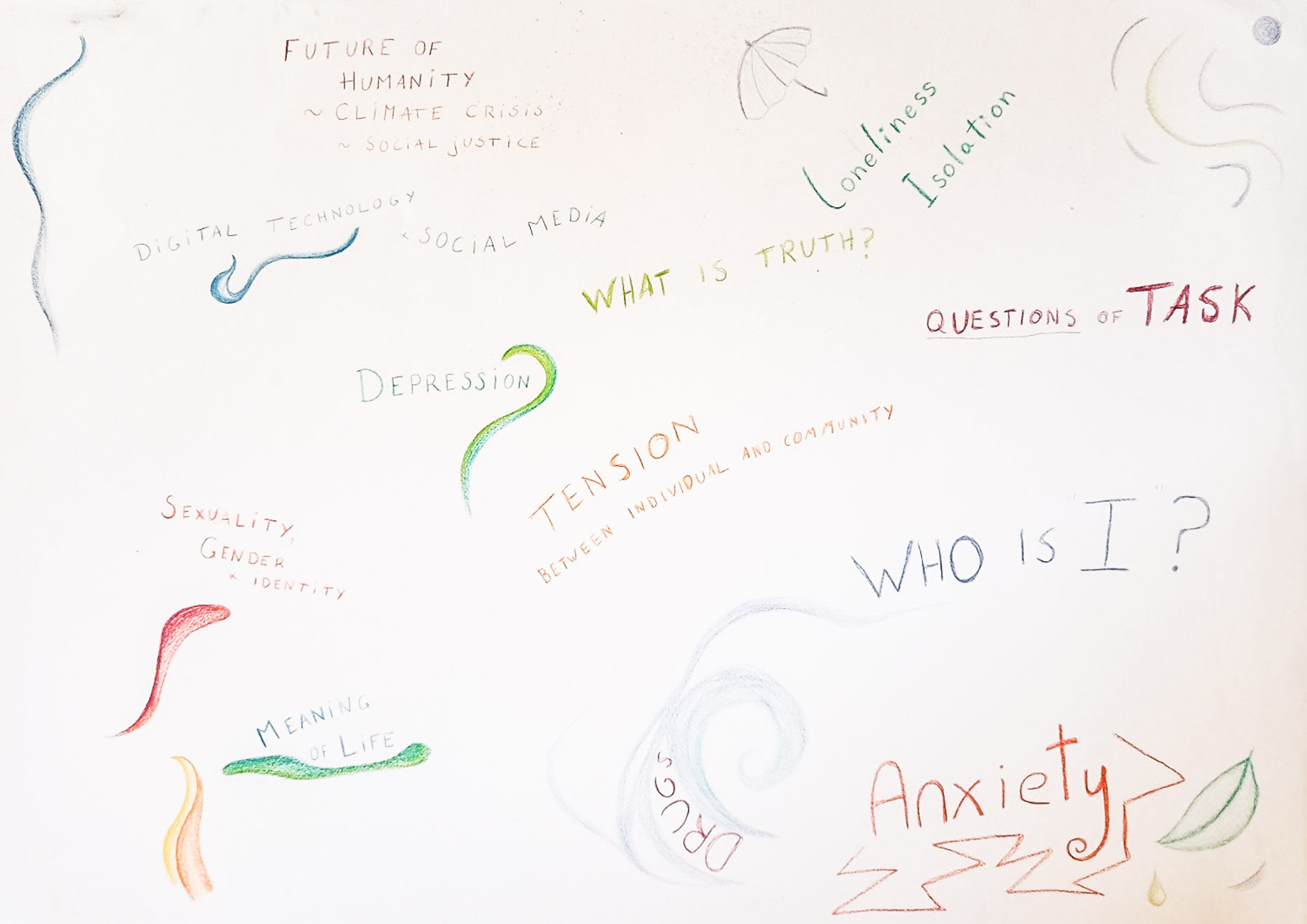 I devised some “tasks of youth” for young people in 2023 based on the central themes that emerged from the workshop. Three main tasks arose out of the answers from the “Challenges of being young today” workshop: