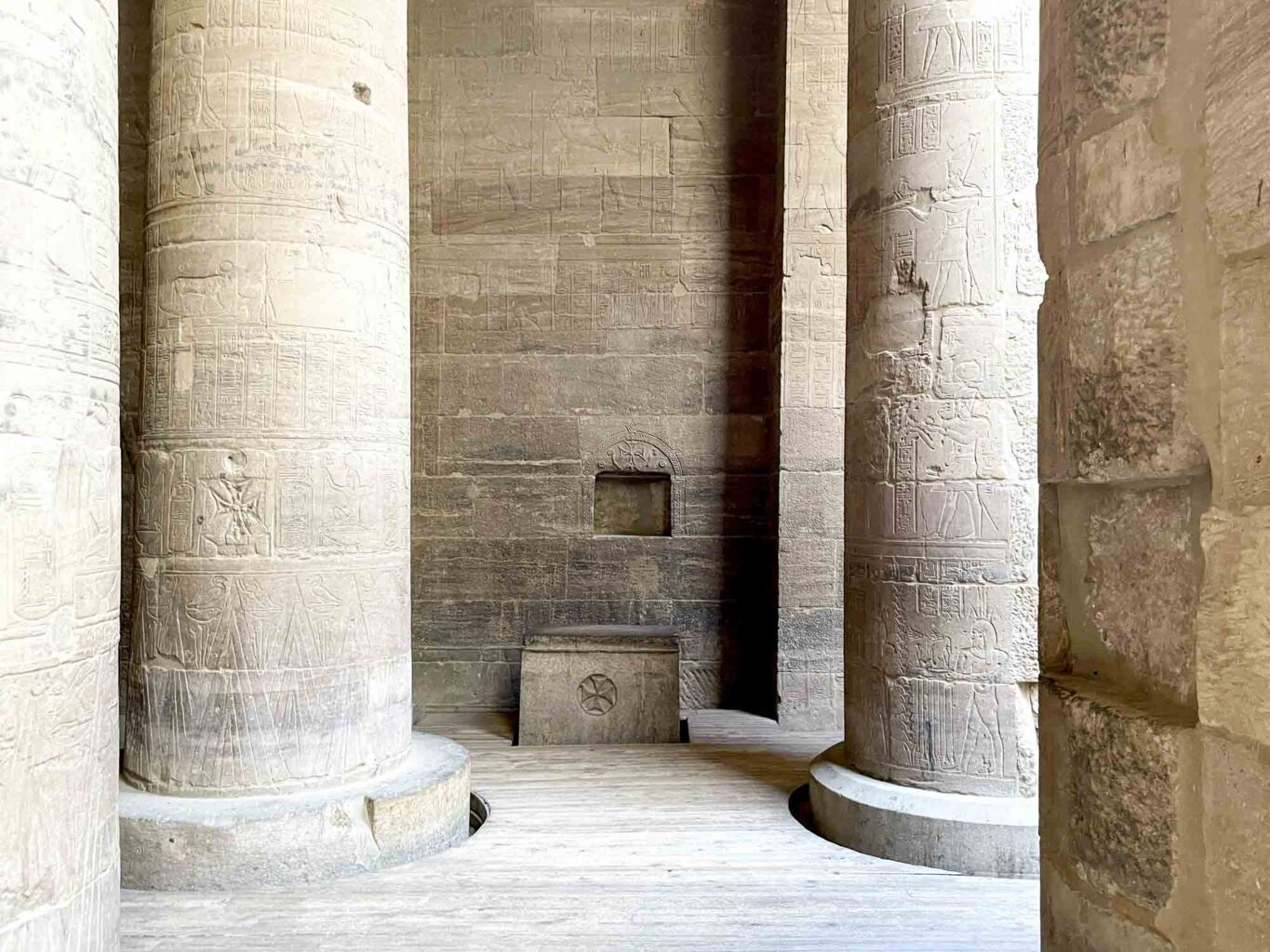 Christian altar in the columned hall of the Temple of Isis. Photo: Wolfgang Held