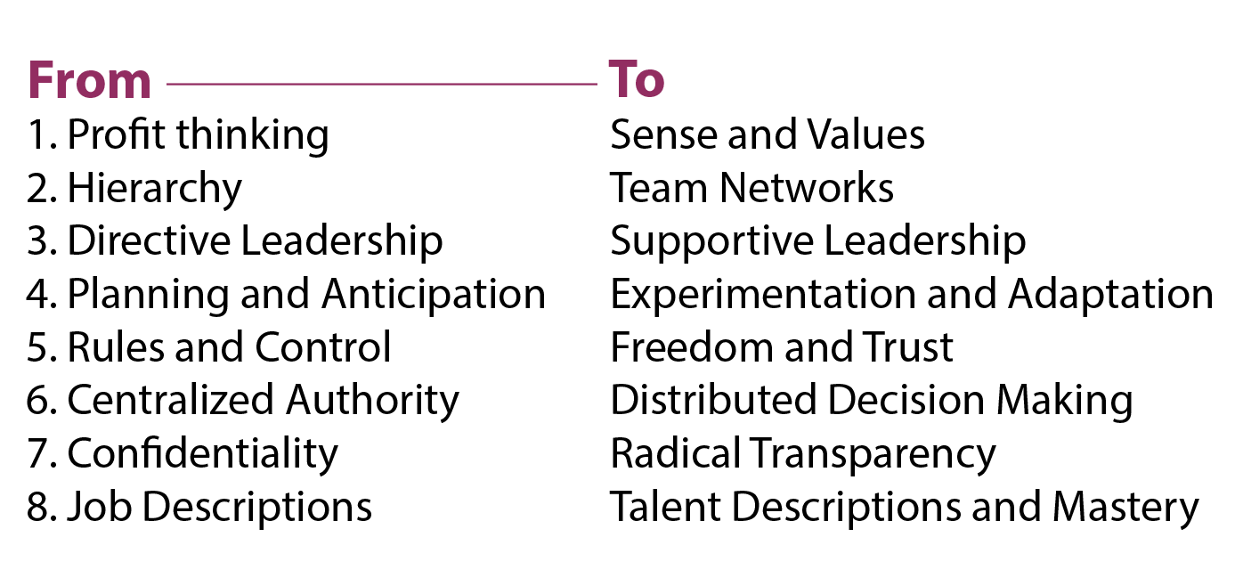 As an example: It is impressive when Pim reports how Jos de Block from Buurtzorg1 has revolutionized care in the Netherlands. Today, 15,000 employees have completely self-organized into small teams in order to develop their vision of humane care and to have more time for those in need. From the beginning (2006), Buurtzorg had the goal of «helping patients at home become healthy and autonomous». A guiding ideal was reducing bureaucracy and simplifying everything to what is really needed. A major help in this was the establishment of their own IT program, which not only takes over daily documentation but also helps make communication between caregivers and relatives as transparent as possible. Professional exchange of employees also takes place via this program, so that handovers can be simplified. In this process, leadership has increasingly turned into coaching work, which is currently being done by 21 coaches at Buurtzorg. «To this day, the guiding question has remained with us: What can we do to provide patients with the best possible healthcare? This is exactly the right question to empower employees,» says Jos de Block. Success is not only recognizable in monetary terms (about 40% cheaper than previous care providers), but is particularly evident in employee satisfaction.