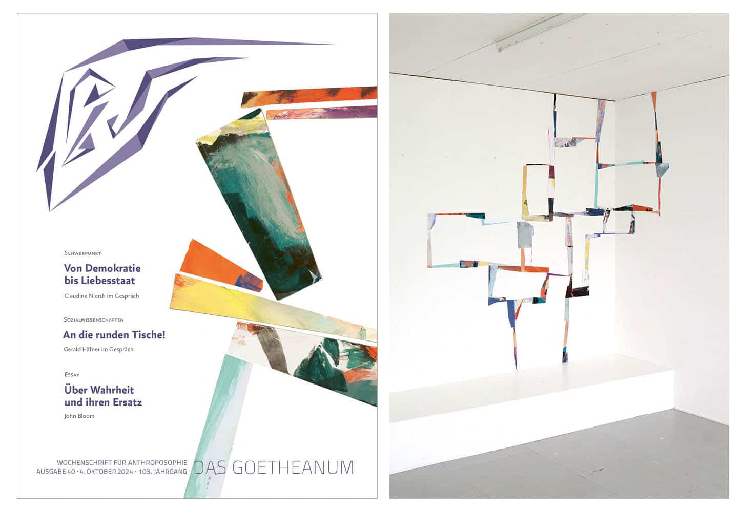 Photos: Cover of issue no. 40 and view of the exhibition at Kunsthalle Kleinschönach.