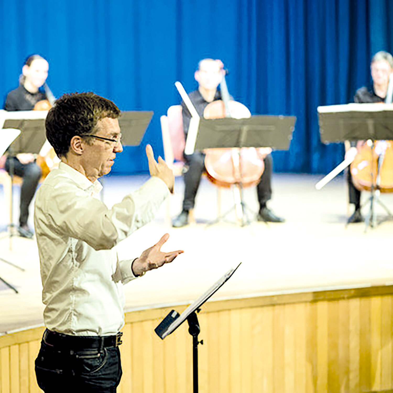Titelbild: Matthias Bölts dirigiert 2019 das Konzert ‹Musik für die Erde›.