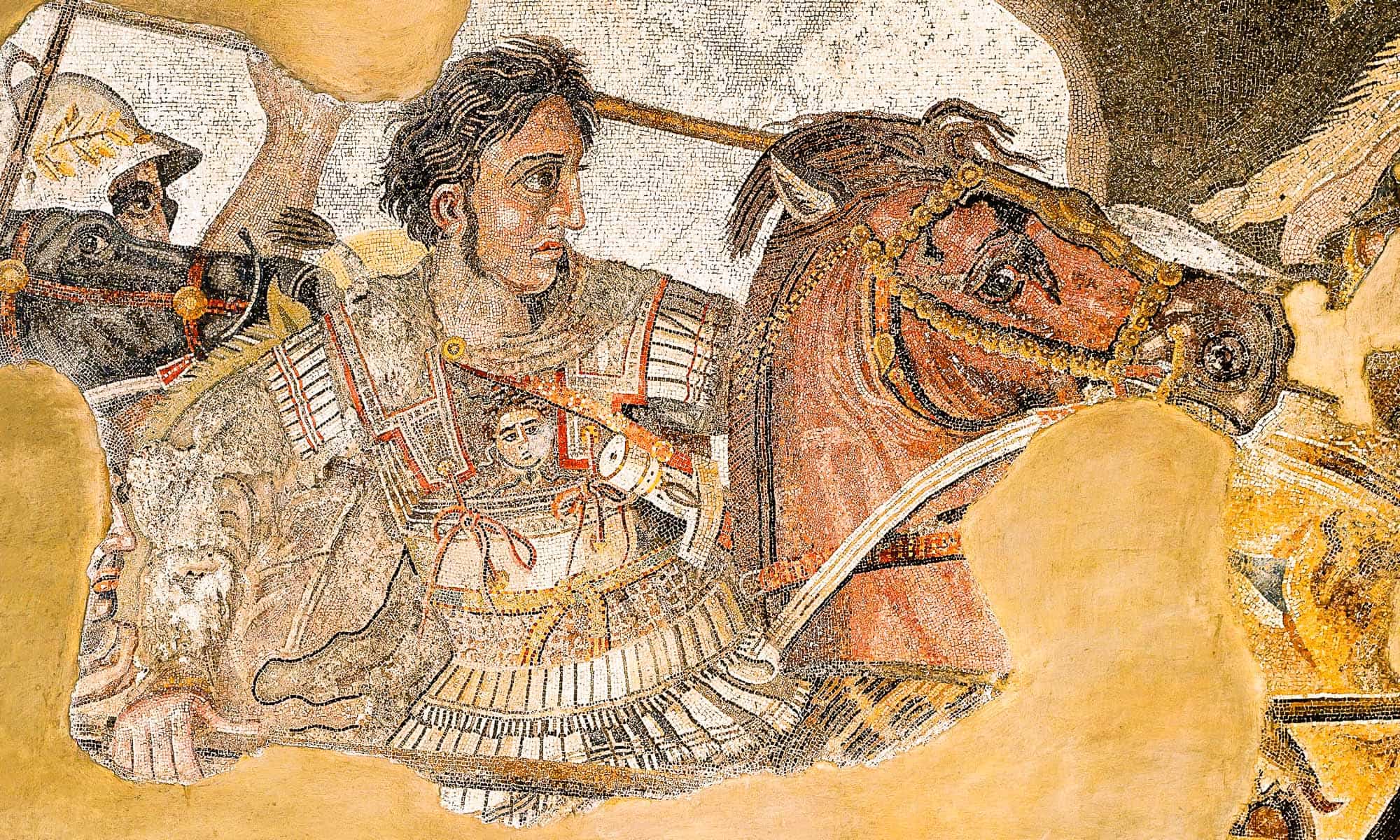 Alexander der Große in der Schlacht von Issus (2. v. Chr.). Detail eines Mosaiks vom Haus des Fauns in Pompeji (Nationales archäologisches Museum Naples)