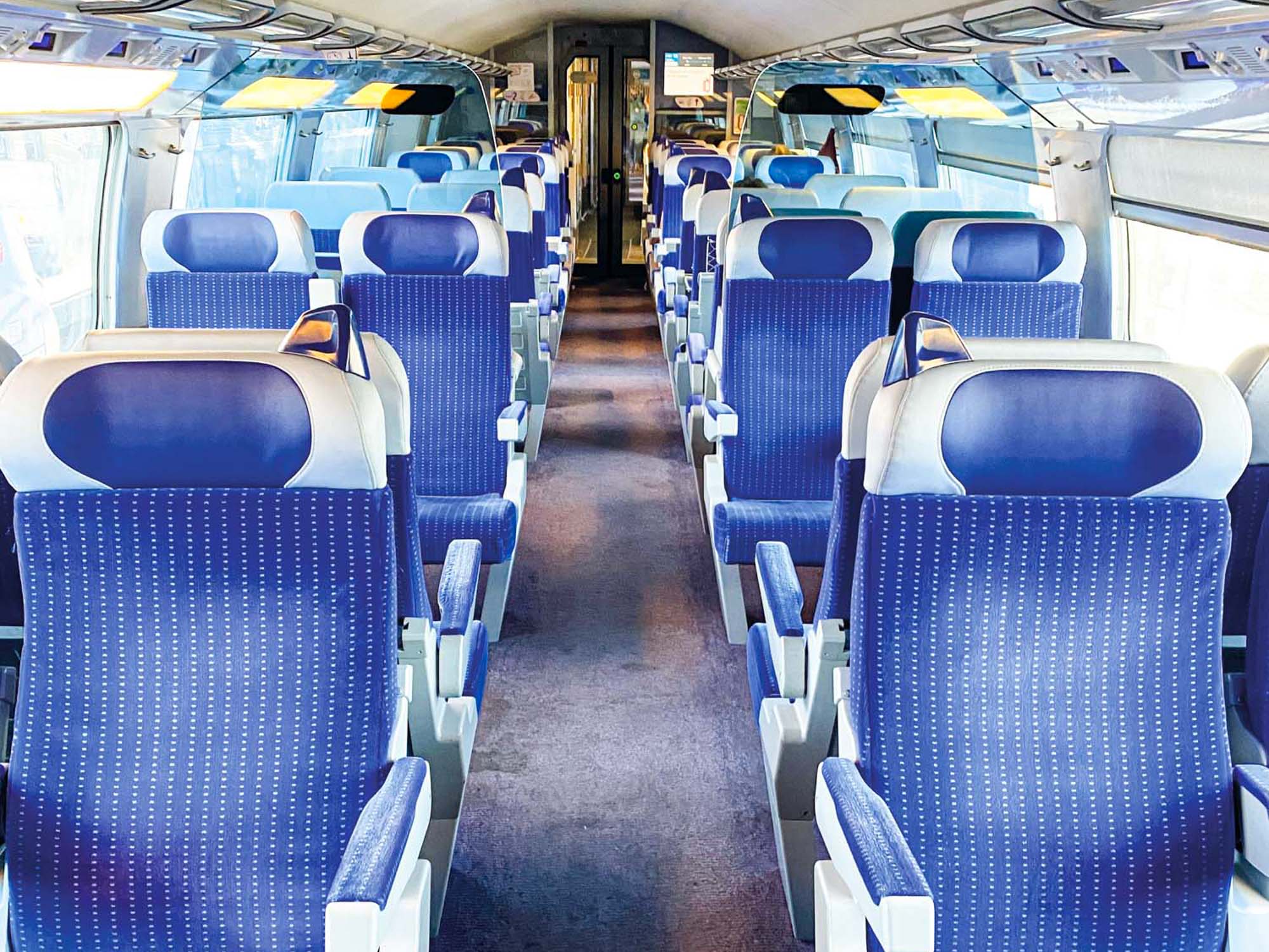 Zunächst saß ich vier Stunden am Stück im ICE. Nach der Fahrkartenkontrolle nahm ich die Maske ab. (Ich trage sie nur für die anderen.) Ich hatte einen Platz am Fenster, auf dem Stuhl neben mir Gepäck, über den Gang zum nächsten Sitz ca. 1,50 Meter Abstand, und die Menschen hatten sich respektvoll voreinander gut verteilt.