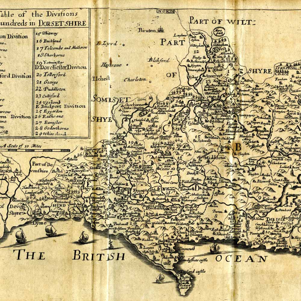 Titelbild: Karte von Dorset, einer Grafschaft im südwesten Englands, ca. 1670.