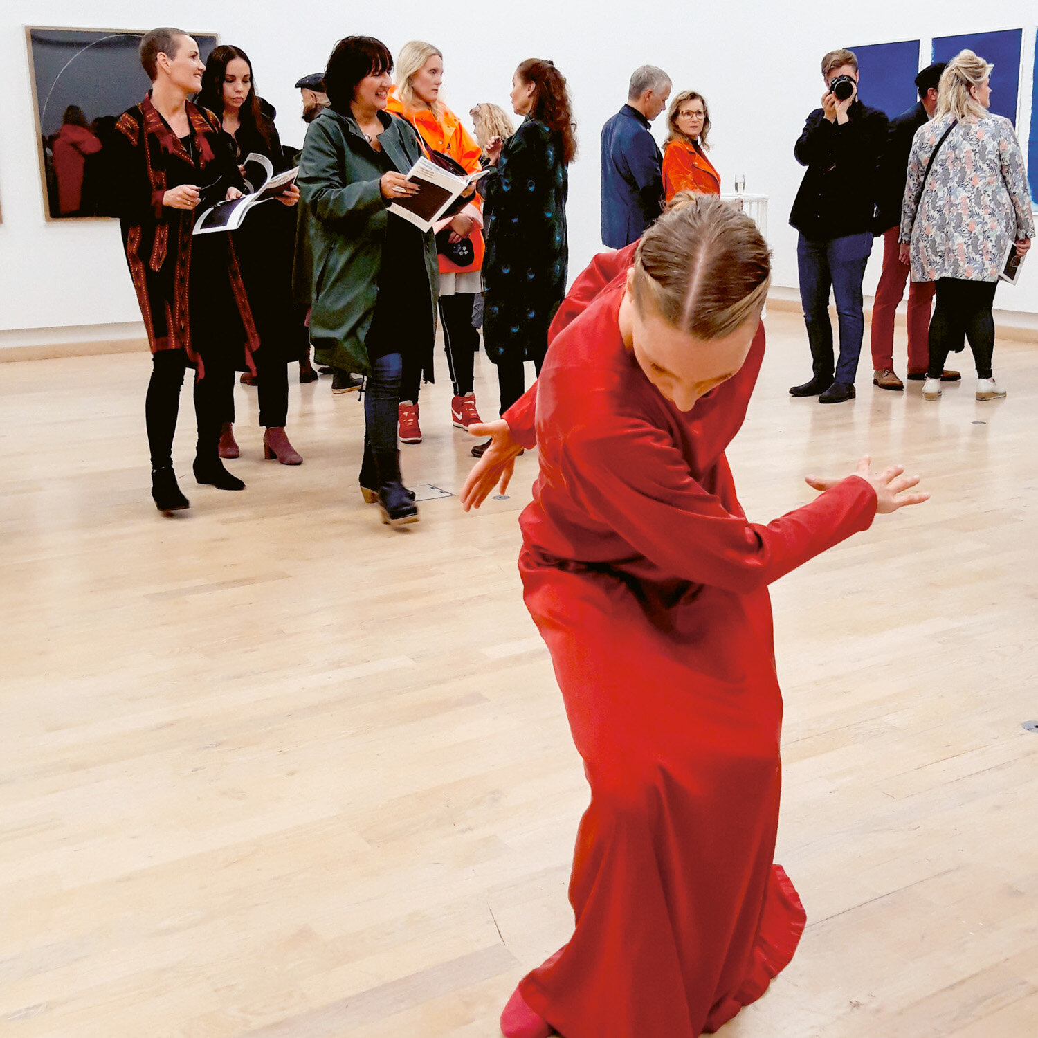 Nach den offiziellen Eröffnungsreden gab es Kunstperformances, während Martje Brandsma eine stille Eurythmie zwischen dem Publikum durch jeden Saal des Museums improvisierte. Die niederländische Eurythmistin ist Teil des Goetheanum-Ensembles und hat in einer Zusammenarbeit mit Philipp Tok eine Videoinstallation für die Ausstellung vorbereitet, in der grafisch-zeichnerische Formen in Bewegung gebracht werden. Die eurythmisierte Geste zeigt, wie die Formen entstehen, sich entfalten, ineinanderfließen, sich verwandeln und wieder zur Ruhe kommen.