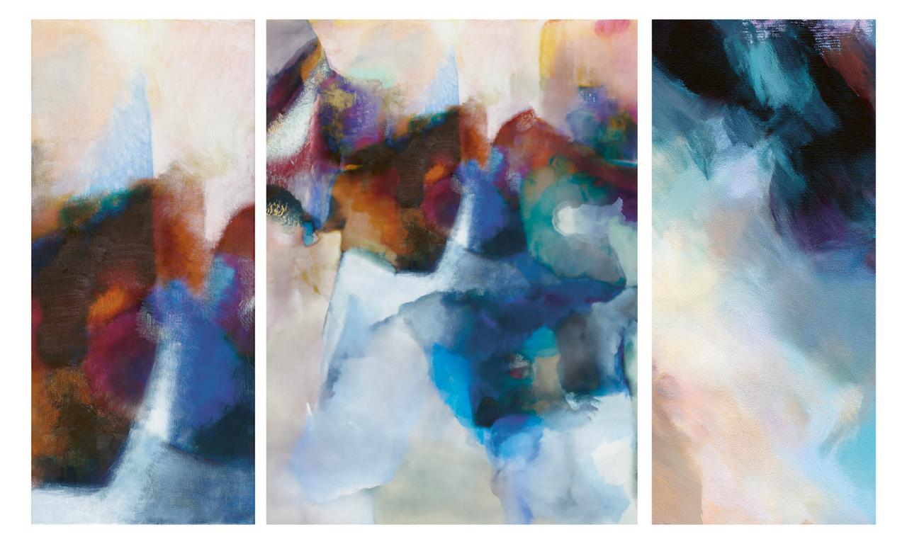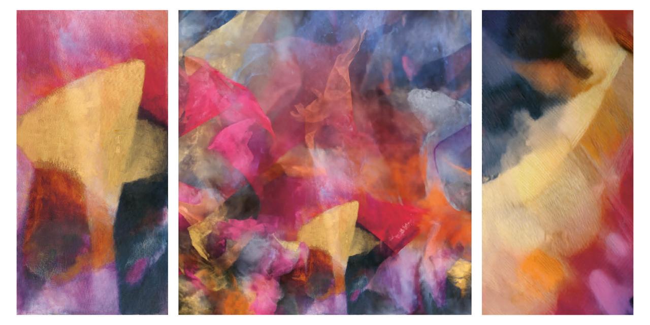 Wie oben bereits dargestellt, besteht zum einen dasjenige, was als Kunst im Zusammenhang mit KI bezeichnet wird, darin, große Datenmengen zusammenzurechnen. Zum anderen kann KI als Werkzeug für künstlerische Produktionen dienen, indem sie den Stil eines bestimmten Künstlers in Form von Daten aufnimmt und daraus ein Bild im Stil dieses Künstlers herstellt. Für eine Tagung in Dornach, habe ich ein Experiment mit zwei malerischen Werken von mir gemacht (Siehe Abbildungen Seite 6 und ). Aus den Daten meiner zwei Originale ließ ich die KI zwei Bilder erzeugen.Der erste Befehl an die KI war, das als Digitalisat vorliegende Gemälde durch generative Verfahrensweisen zu erweitern. Das heißt, die KI sollte die Daten meines Bildes als Ausgangspunkt nehmen und an den Rändern die Form- und Farbgestaltungen im Sinne des von mir gemalten Bildes weitermalen. Der zweite Befehl lautete, ein Bild im Stil meiner Bilder herzustellen.