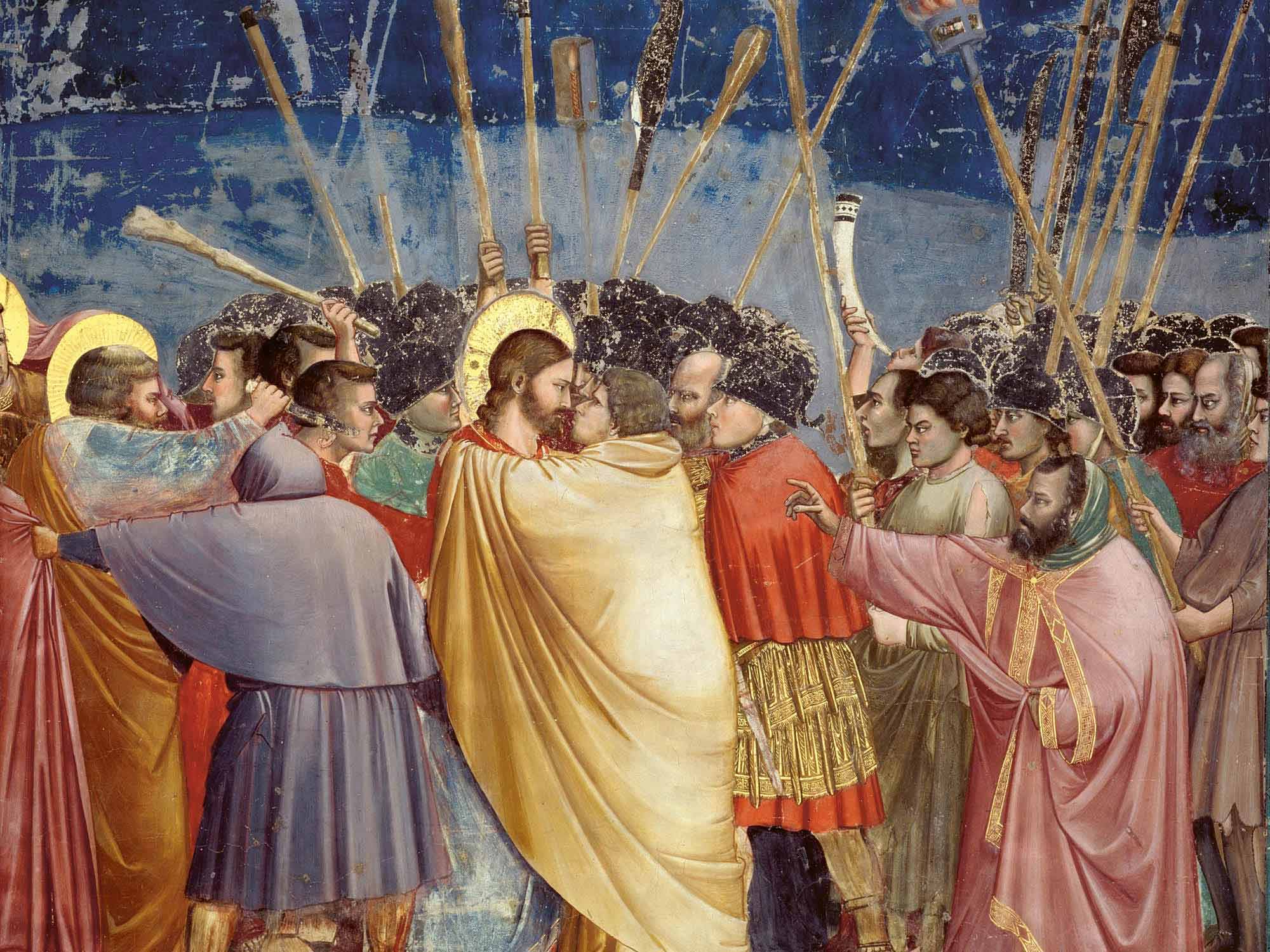 Unmittelbar im Anschluss der Kuss des Judas. Auch er trägt dazu bei, dass der Christus den Jesusleib nochmals ergreifen und so den nun folgenden Leidensweg durchstehen kann.