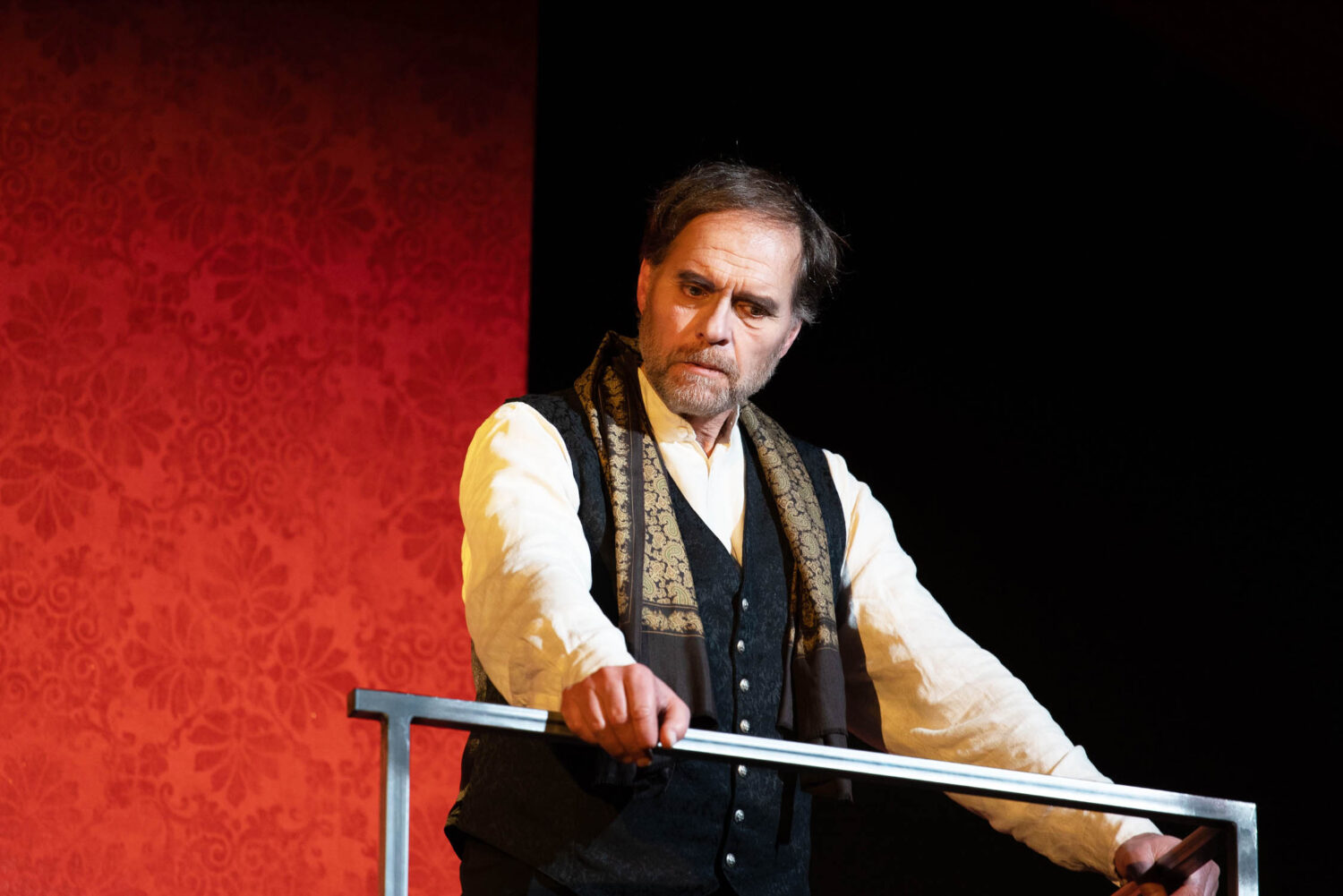 Nachtrag zu Gloster: Ihm gehen nach seiner Blendung durch den gewalttätigen Grafen von Cornwall, den Ehemann Regans, die Augen auf. Er erkennt, dass er Opfer einer Intrige seines unehelichen Sohns Edmund geworden ist und seinen legitimen Sohn Edgar zu Unrecht verstoßen hat. Gloster, der den König davon abbringen wollte, seine Lieblingstochter Cordelia zu verstoßen, merkt tragischerweise nicht, dass er genauso ‹falsch› handelt wie Lear, als er seinen Lieblingssohn Edgar verstößt. Der erblindete Gloster (Thorsten Blanke) ist sehr glaubwürdig dargestellt.