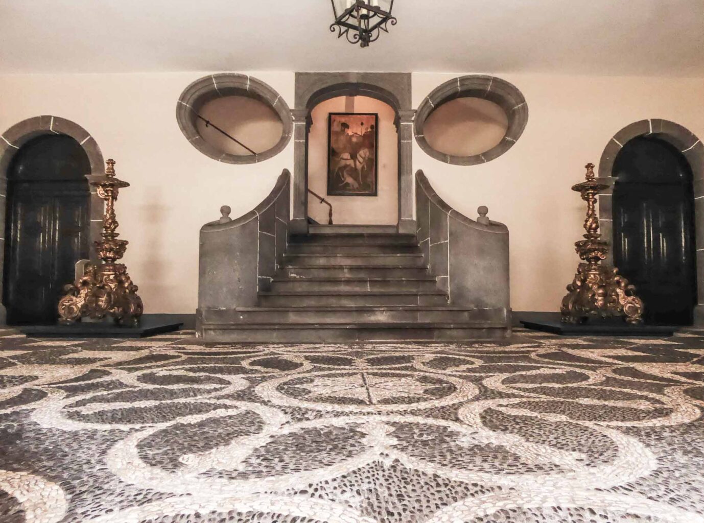Als ich eines Tages durch eine enge Straße von Funchal, Hauptstadt der Insel Madeira, ging, stieß ich zufällig auf die alte Tür eines Museums für sakrale Kunst. Damals besuchte ich auf Initiative einer Waldorf-Pionierin dieses kleine, wunderbare Felsen- und Blumenparadies mitten im Atlantik. Aus reiner Neugierde, ob nach der Entdeckung des Archipels durch die Portugiesen im Jahre 1419 das Motiv von Michael und dem Drachen auch in dieser einsamen Gegend im Meer bekannt war, durchsuchte ich alle Räume des Museums und fand nichts. Nach einem Gespräch mit dem Direktor erfuhr ich, dass das Museum an anderer Stelle doch etwas zu diesem Thema hatte. So fand ich im Foyer auf einem schlecht beleuchteten Treppenabsatz ein altes Gemälde, das als einsame Zierde an der Wand hing. Sofort fielen mir viele Details auf.