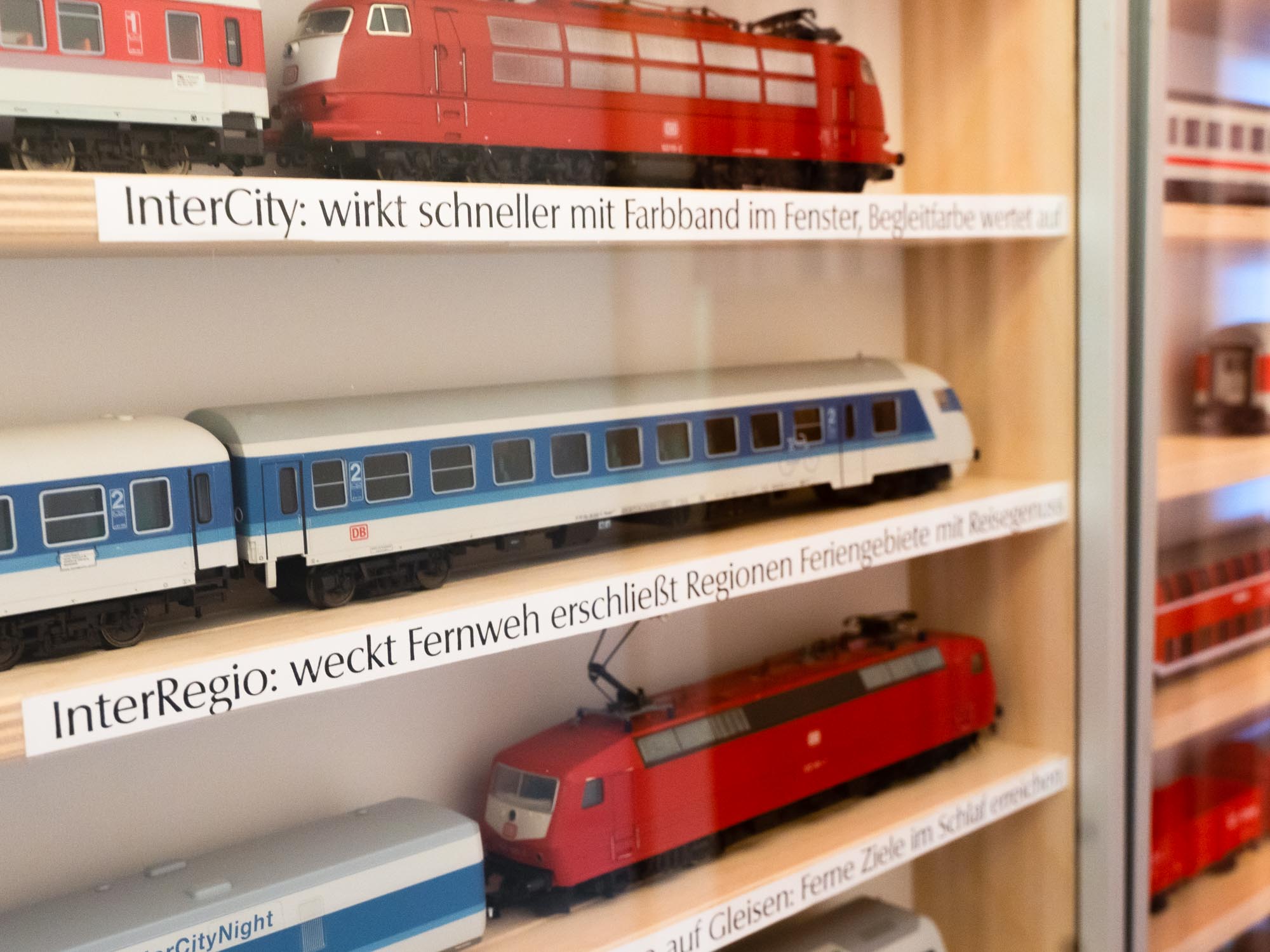 Diese Ausstellung bietet einen vielseitigen Einblick in die Hintergründe und Gestaltungsansätze des Bahndesigns in den 80er- und 90er-Jahren. Zusammengestellt wurde sie von Karl-Dieter Bodack, der von 1969 bis 1995 bei der Deutschen Bahn tätig war. Er entwickelte das Zugsystem Interregio mit neuen Fahrzeuginterieurs und sorgte als einer der Leiter des Design-Centers dafür, dass anthroposophische Designer und Farbgestalter wie Jens Peters, Fritz Fuchs, Uwe Janke und das Büro Haslacher die Möglichkeit bekamen, Züge wie den ICE 1 und 2 zu gestalten.