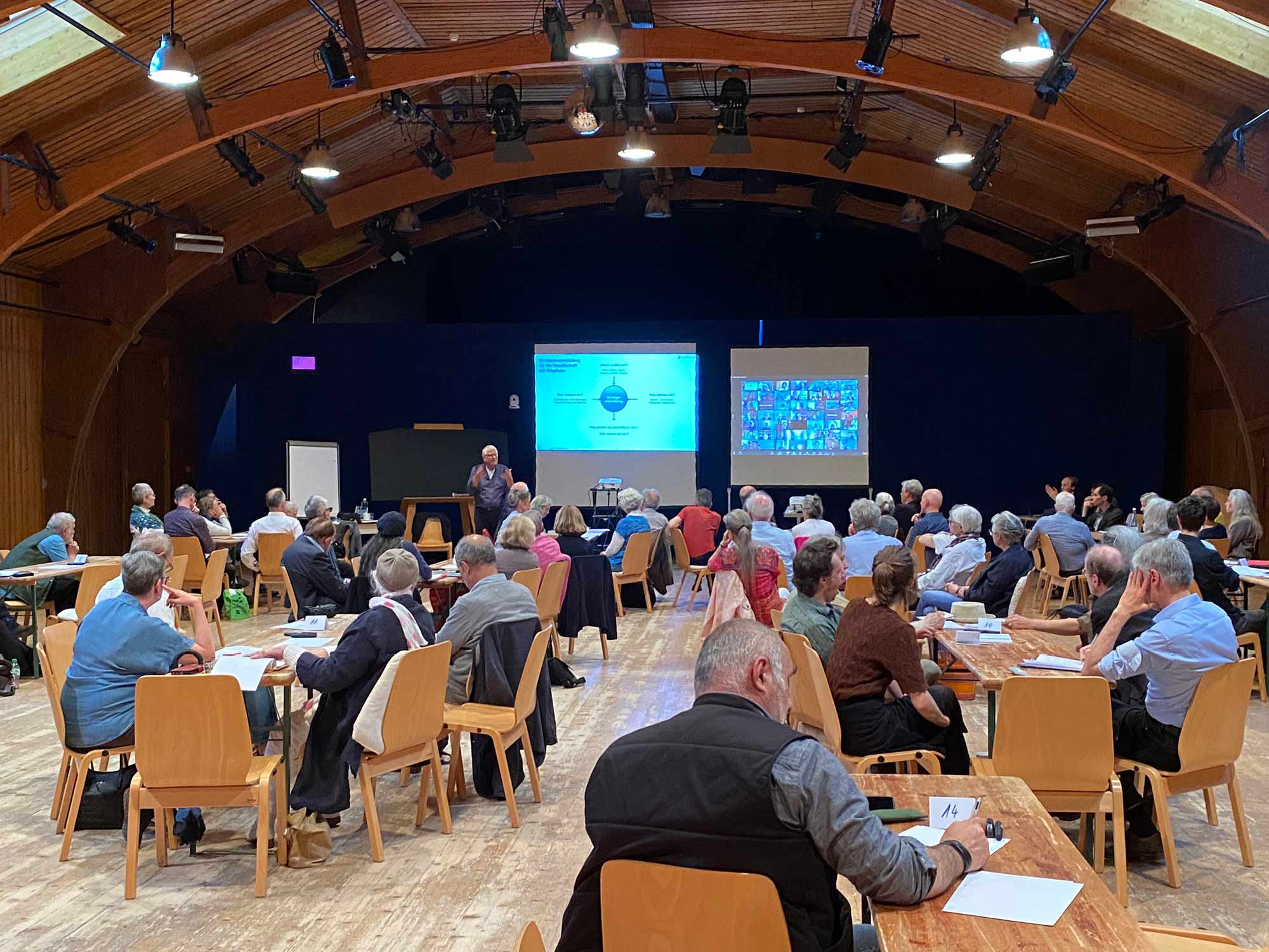 Diese Foren – vor der Generalversammlung fanden sechs statt – hat Harald Jäckel initiiert und moderiert. Am siebten Forum wurde nun auf die Generalversammlung zurückgeblickt. Dabei seien positive und negative Momente hervorgekommen. Negativ wurde erlebt, dass der Antrag auf Rechenschaftspflicht der Sektionsverantwortlichen durch einen Nichteintretensantrag von der Mehrheit der Anwesenden abgelehnt wurde, ohne dass der Antrag vorgestellt werden konnte. Der Moderator hatte zu Beginn dieses Mitgliederforums die Frage gestellt, ob es nach der Antragsfülle bei der Generalversammlung Sinn mache, die Mitgliederforen wie im vergangenen Jahr weiterzuführen. Er beschrieb, dass das Goetheanum sich in der Differenzierungsphase befinde. Dazu gehöre, dass das Gesamte aus dem Blick gerate. Es wurde vorgebracht, dass das Recht auf Mitbestimmung aller Mitglieder nicht bedeuten dürfe, dass wenige den Weg prägen.