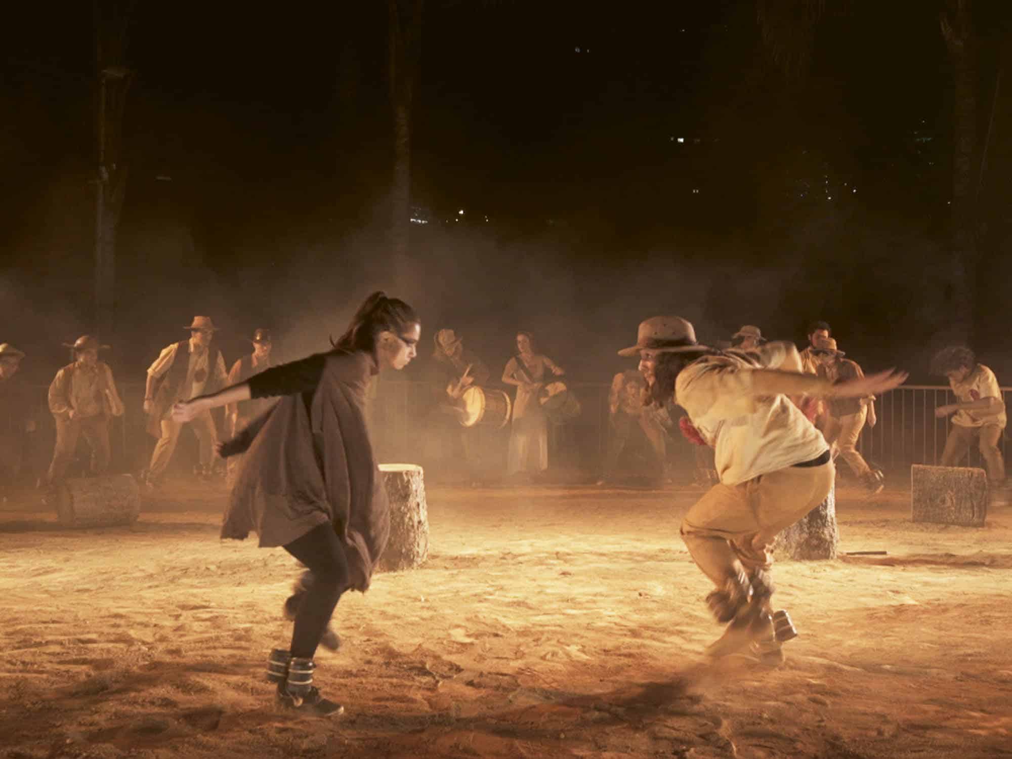 Titelbild Francesco Antonini (12. Klasse, 2018) und Isabel Pearce (12. Klasse, 2018) tanzend im Vordergrund, während einer Aufführung von ‹Grande Sertão: Veredas›.